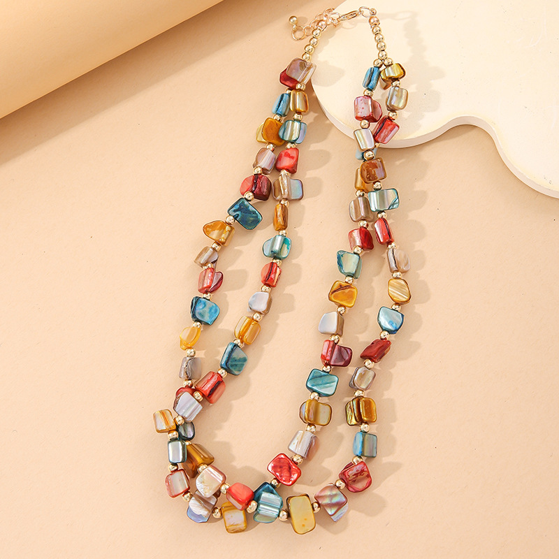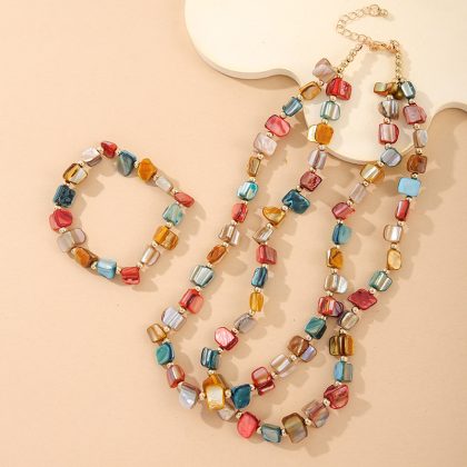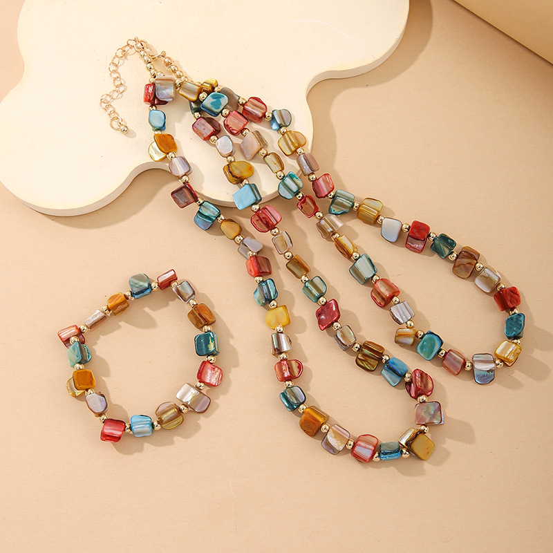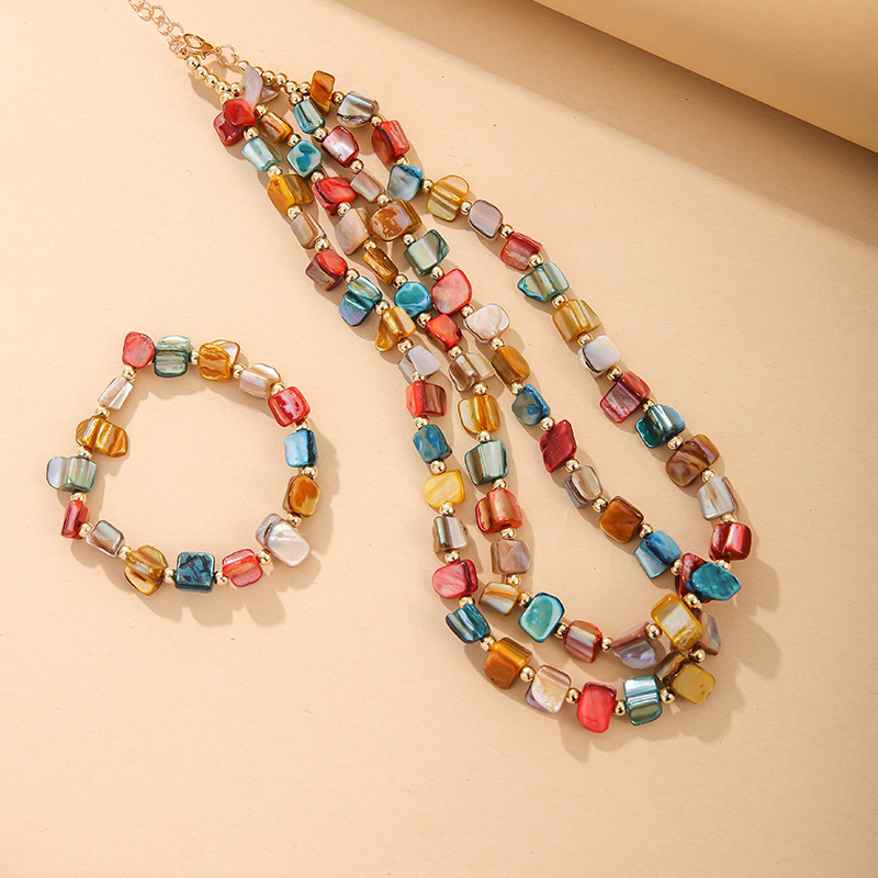 | nameOriginal | European and American color natural stone beaded necklace bracelet combination suit bohemian irregular shell jewelry suit |