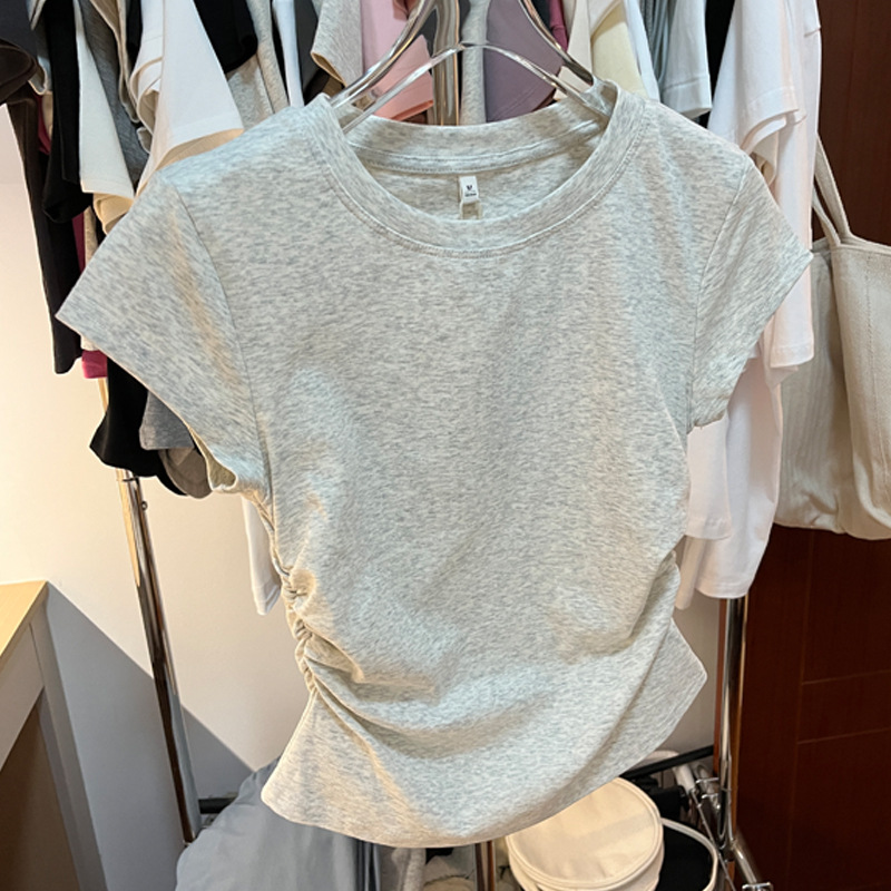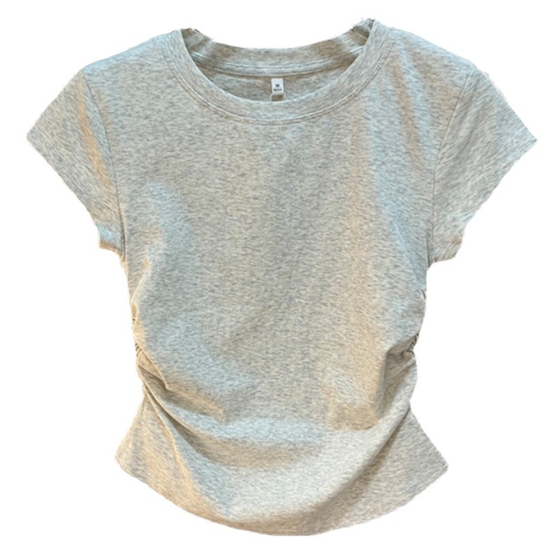 | nameOriginal | European and American Color Shoulder T-shirt Short-sleeved Women's Summer Slim-fit Slimming Chic Short Card Waist All-match Tight Waist Grey Top |