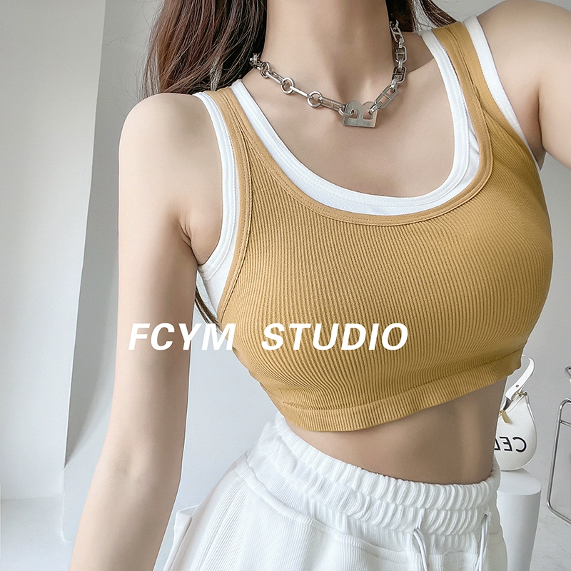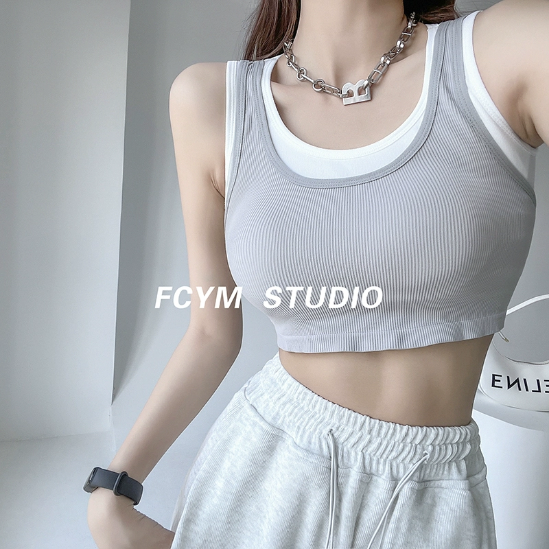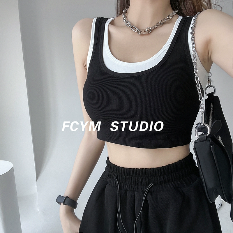 | nameOriginal | European and American contrasting color slim fit niche exposed navel fake two pieces |