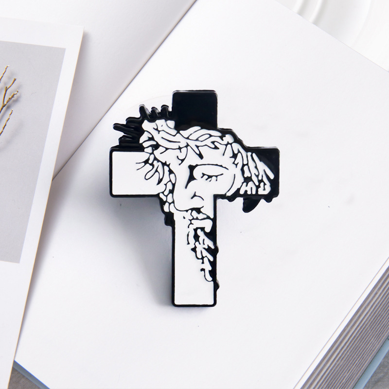 | nameOriginal | European and American creative black and white portrait cross brooch fun cartoon punk badge jewelry clothing bag accessories |