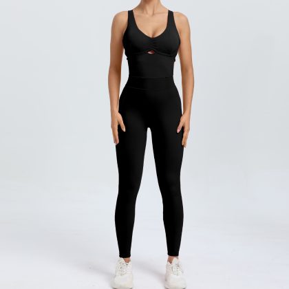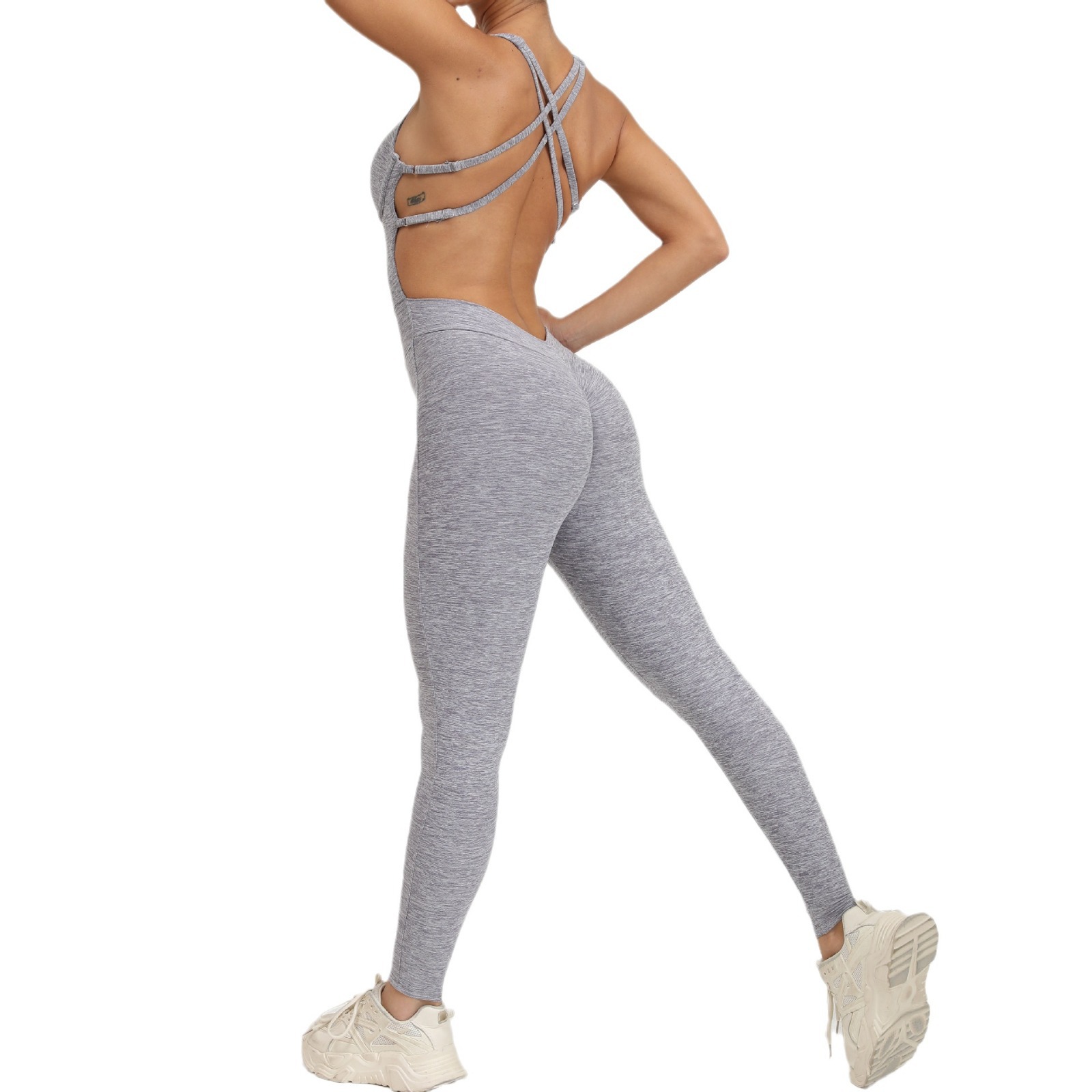 European and American Cross adjustable shoulder strap one-piece yoga clothes dance belly contracting Peach Hip sports stretch tight jumpsuit
