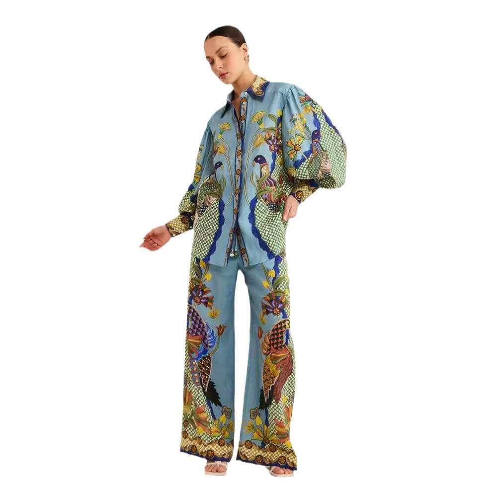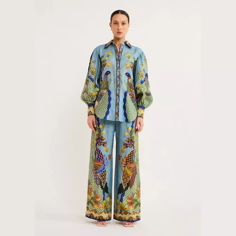 | nameOriginal | European and American cross-border 2023 Independent station AliExpress fashion personalized printed puff sleeve vacation leisure lace suit women |