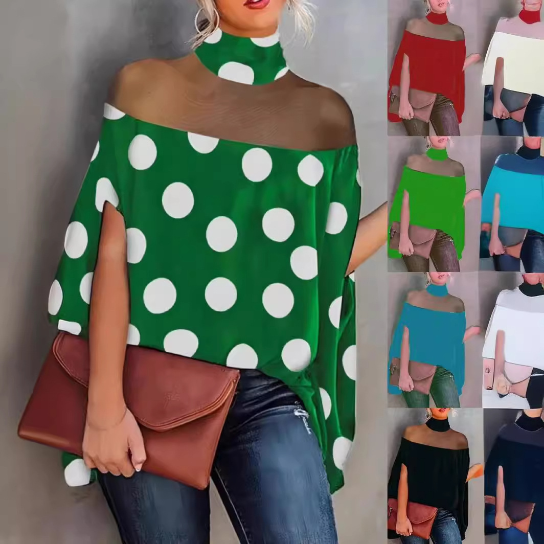 | nameOriginal | European and American cross-border 2023 Independent station Amazon mesh spring and summer casual loose printed top batwing sleeve cloak |
