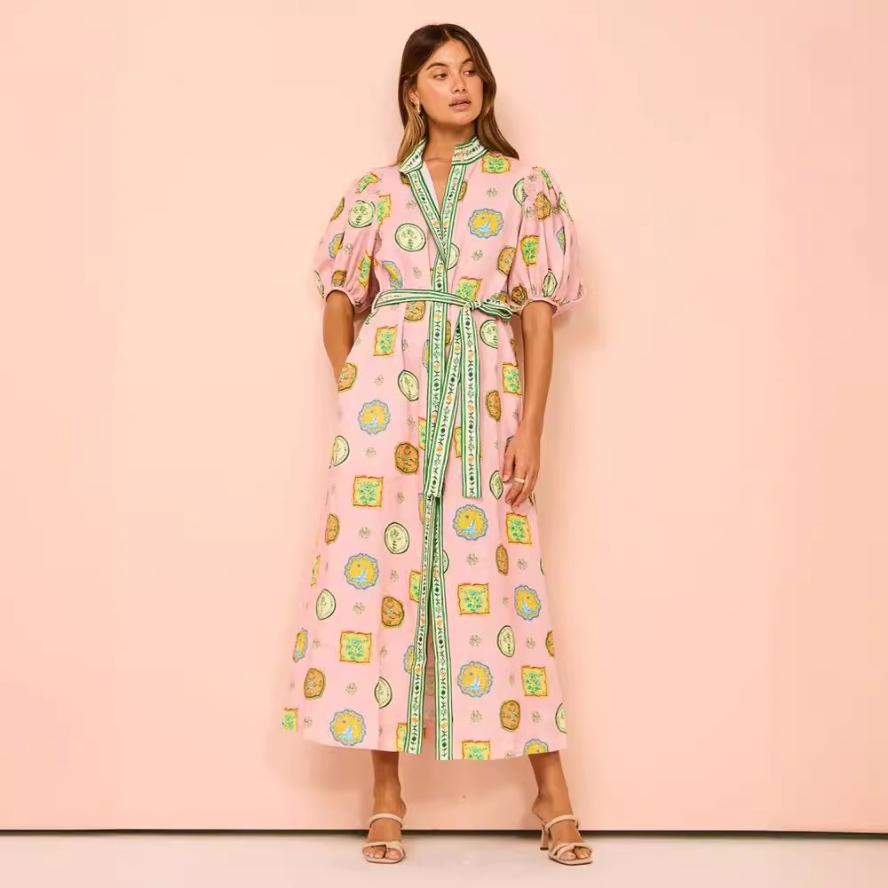 | nameOriginal | European and American cross-border 2024 independent station AliExpress personalized graffiti lantern sleeve cardigan casual fashion printed shirt for women |