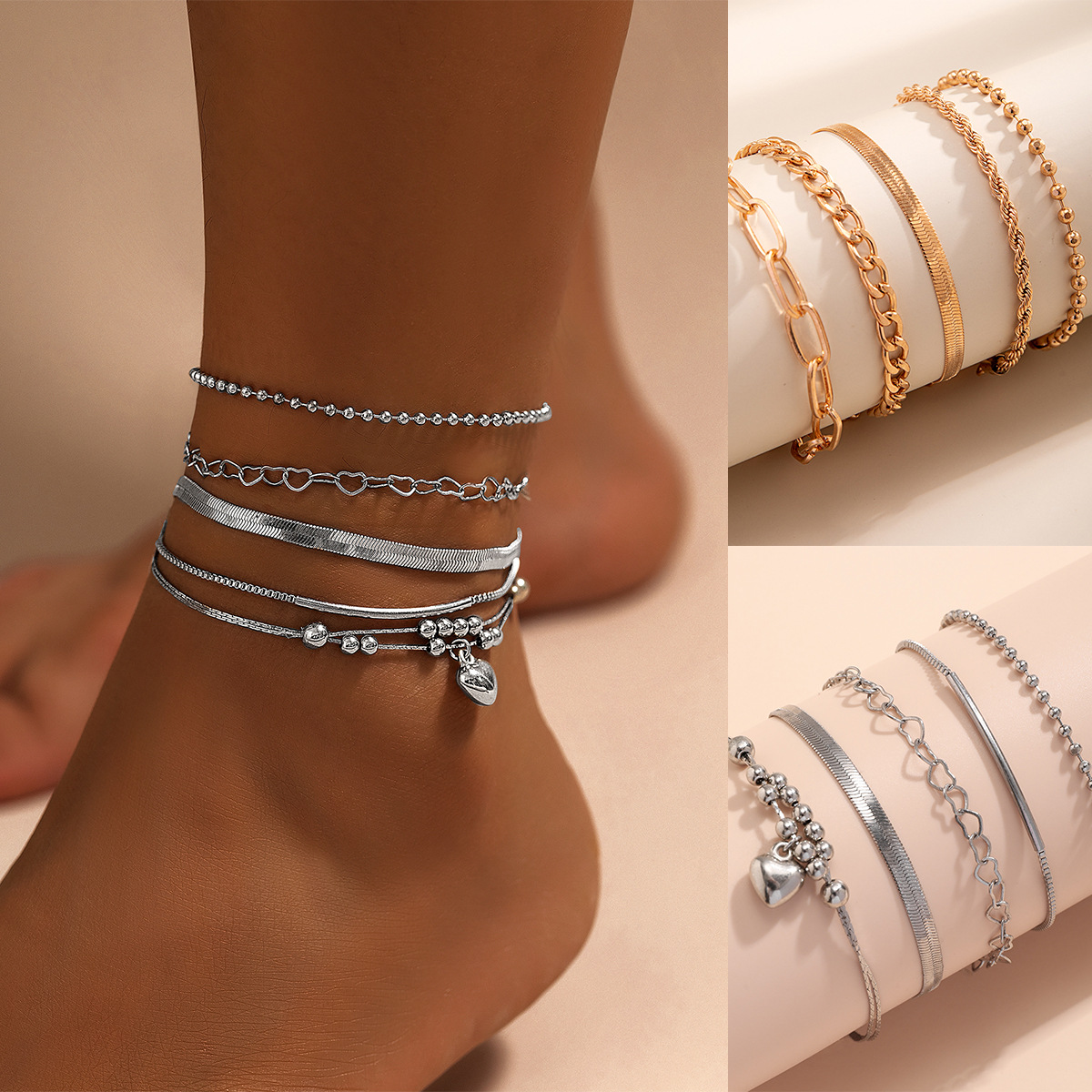 | nameOriginal | European and American cross-border Beach love beaded anklet punk chain anklet suit hip hop personality snake bone chain anklet |