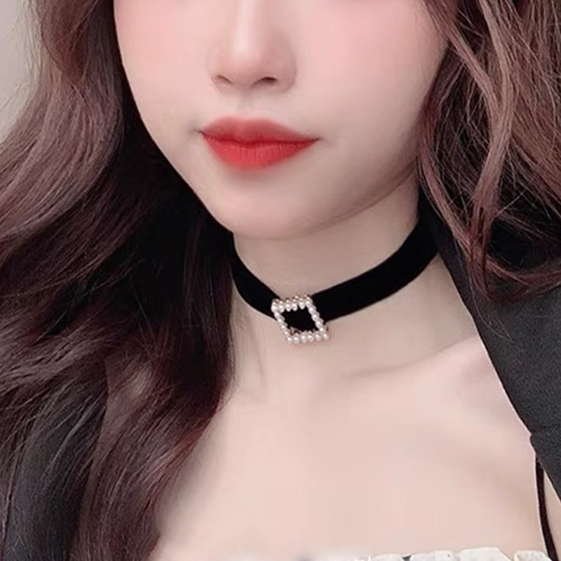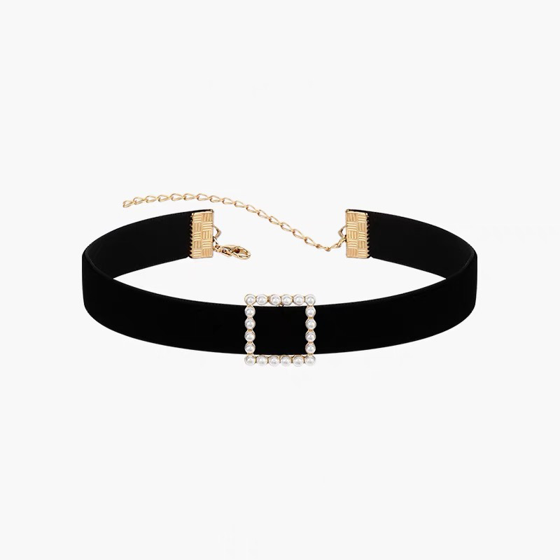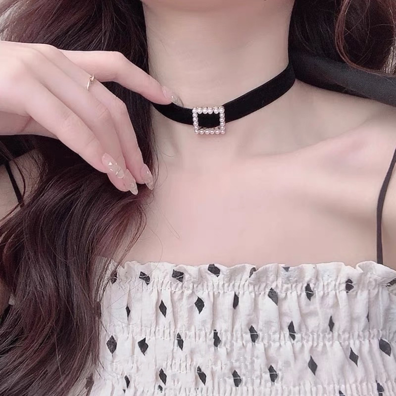 | nameOriginal | European and American cross-border black velvet inlaid square pearl choker original short collar clavicle chain chocker |