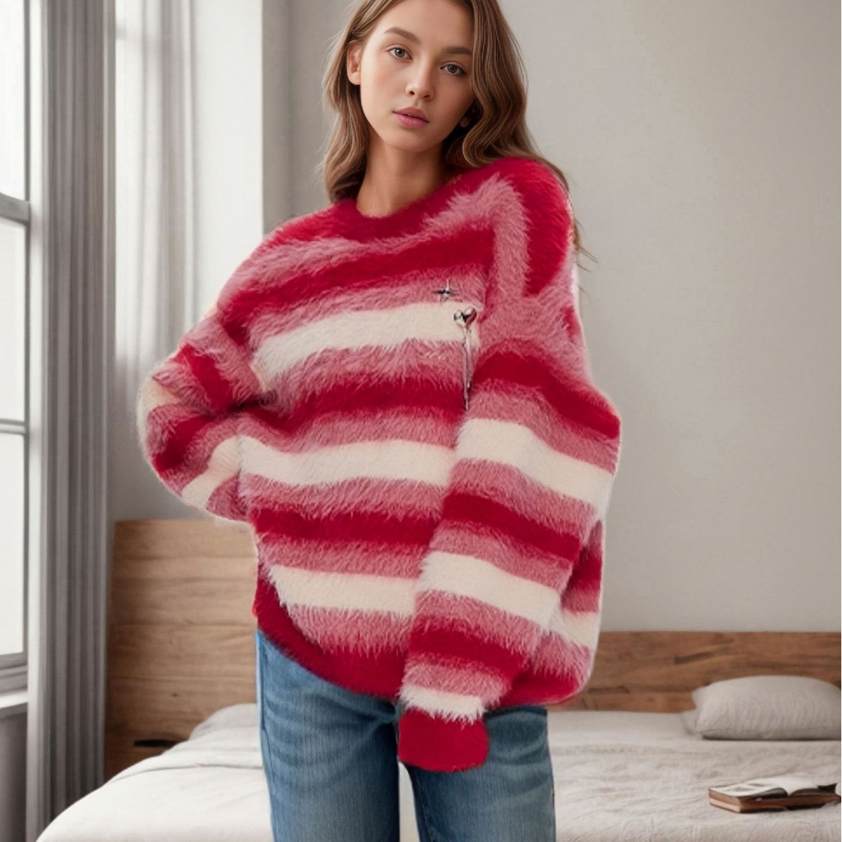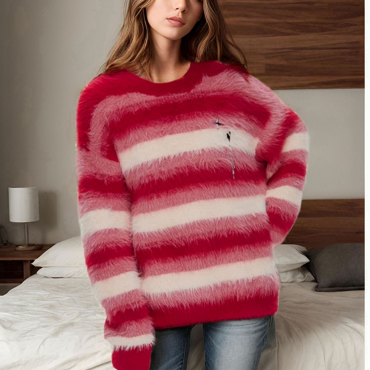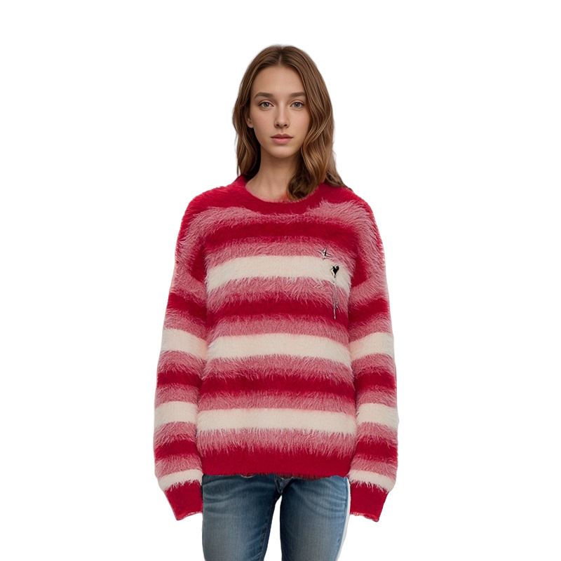 | nameOriginal | European and American cross-border Christmas round neck red striped long velvet sweater women's Amazon autumn and winter loose plus size knitted top |