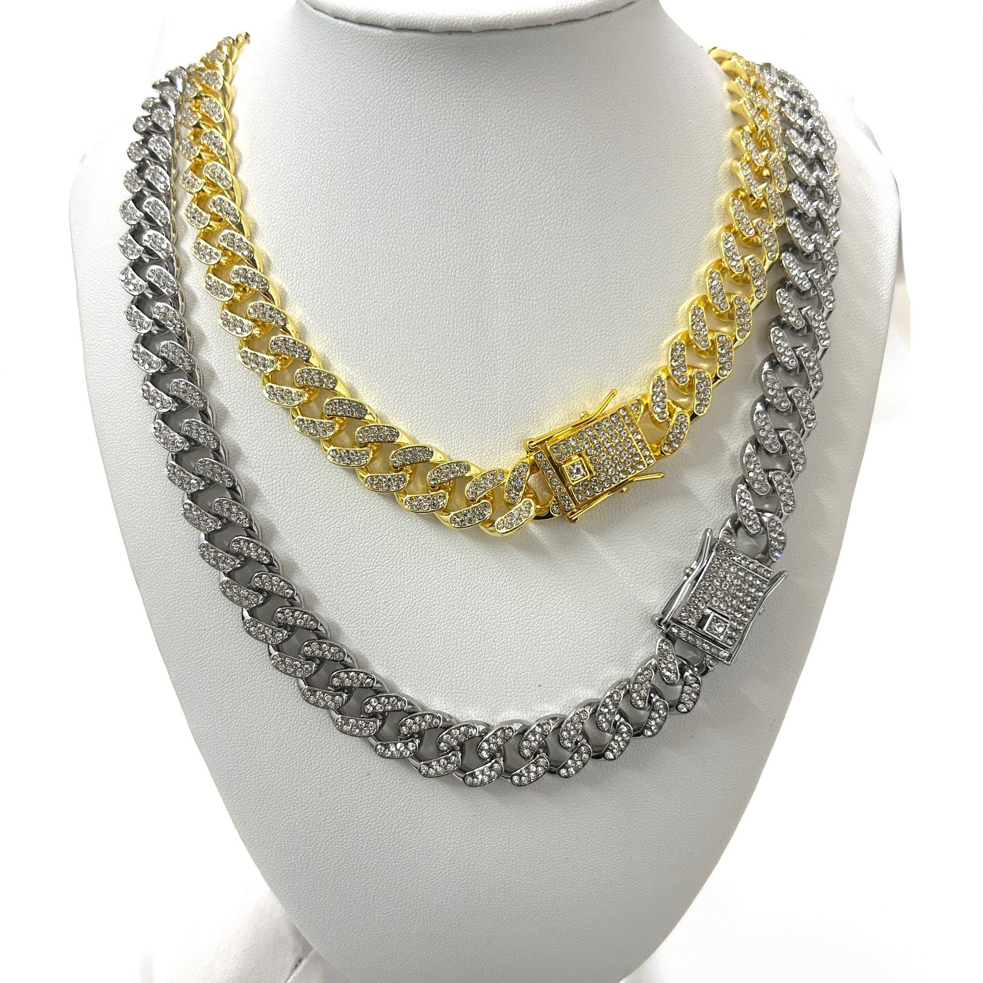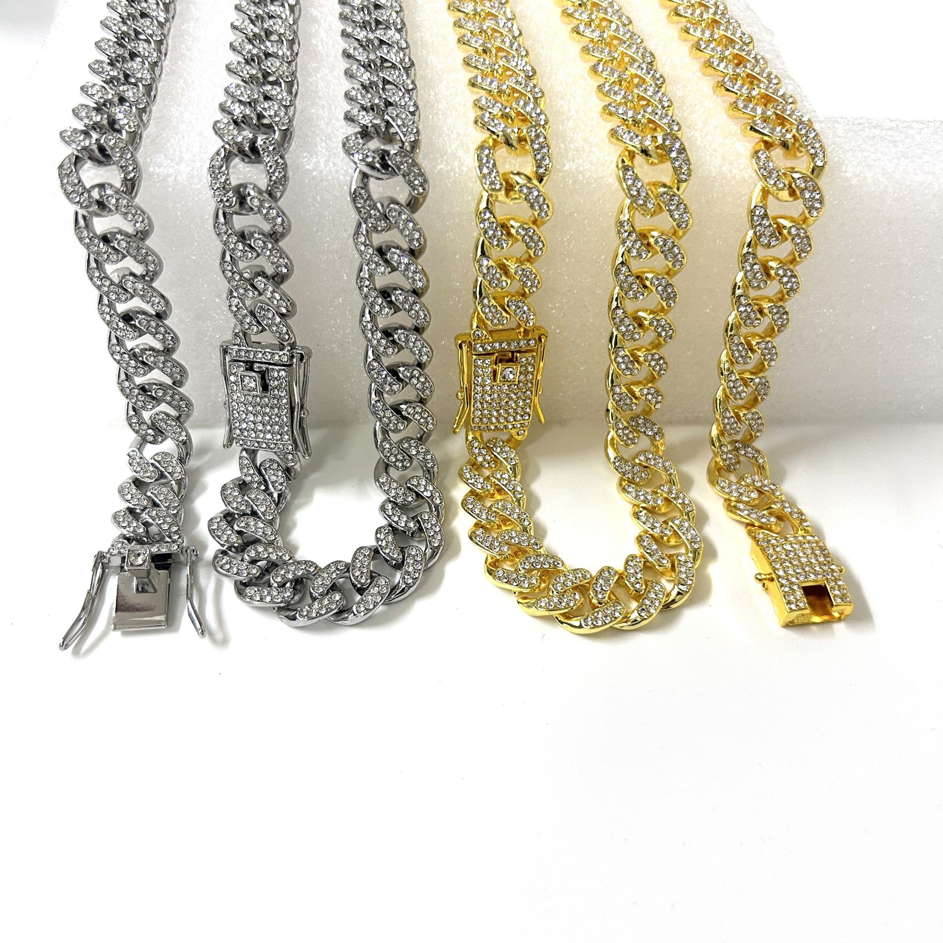 | nameOriginal | European and American Cross-border Cuban Chain Diamond Bracelet 13mm Simple Men's and Women's Hiphop Hip-Hop Gold-plated Necklace |