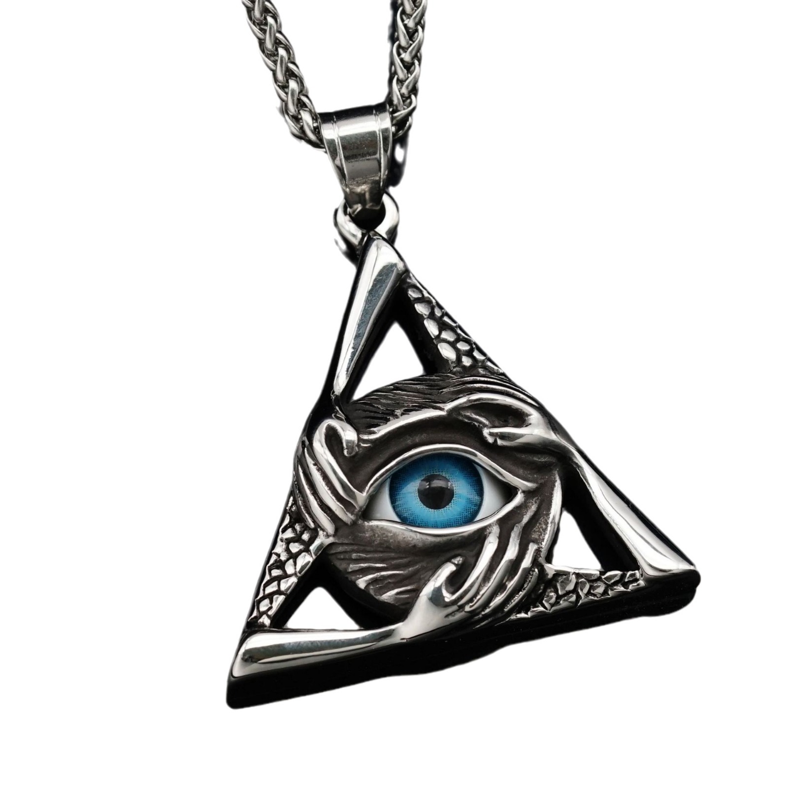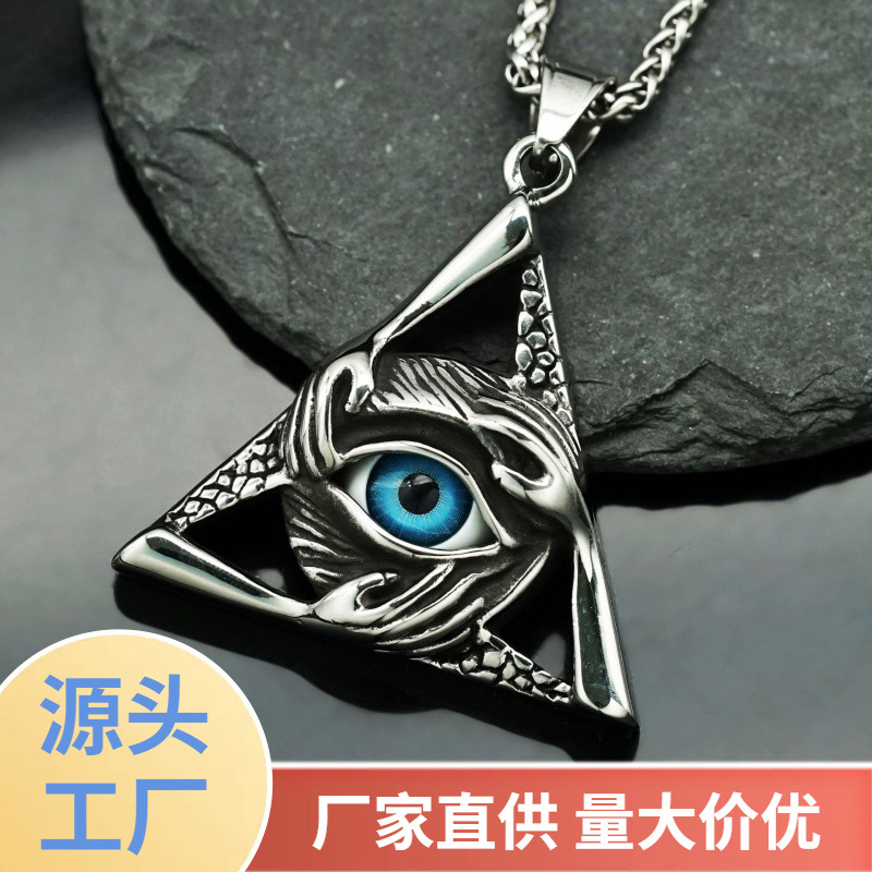 | nameOriginal | European and American Cross-border E-commerce Hot Products Triangle Evil Hand Devil Eye Pendant Punk Aggressive Titanium Steel Pendant |