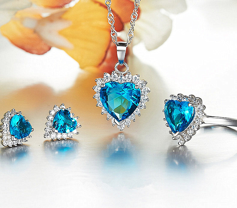 | nameOriginal | European and American Cross-border E-Commerce Micro-inlaid Zircon Ocean Heart Necklace Ring Earrings Set Wedding Jewelry |