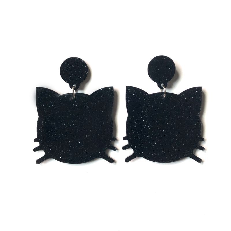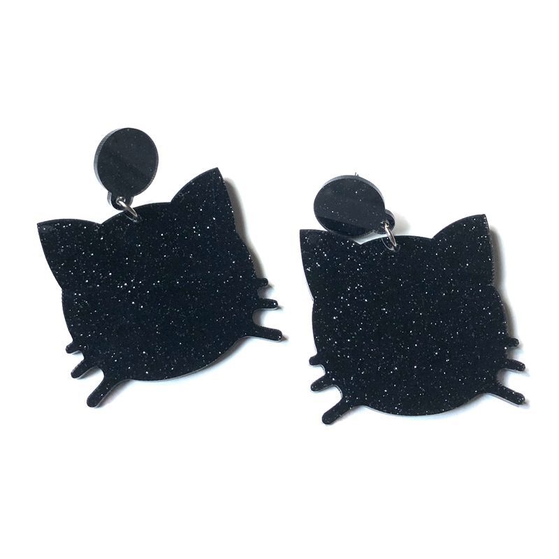 European and American cross-border earrings glitter acrylic animal black kitten earrings women's earrings earrings