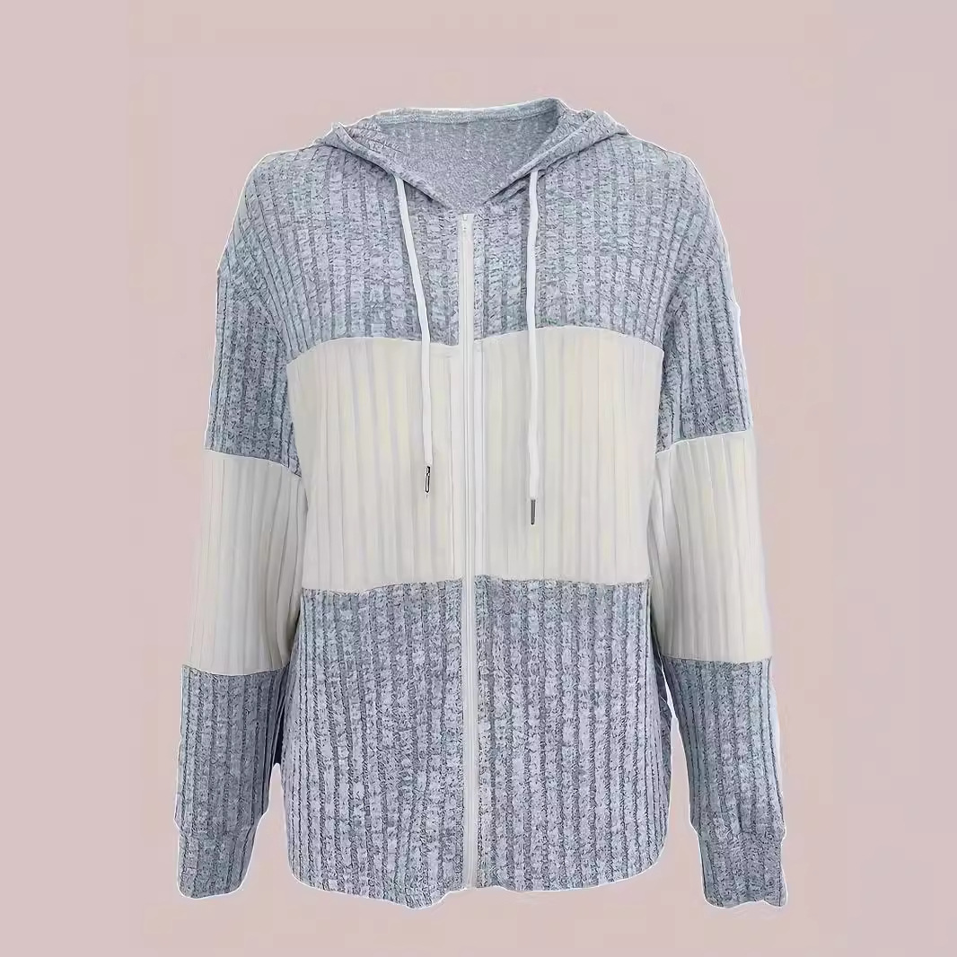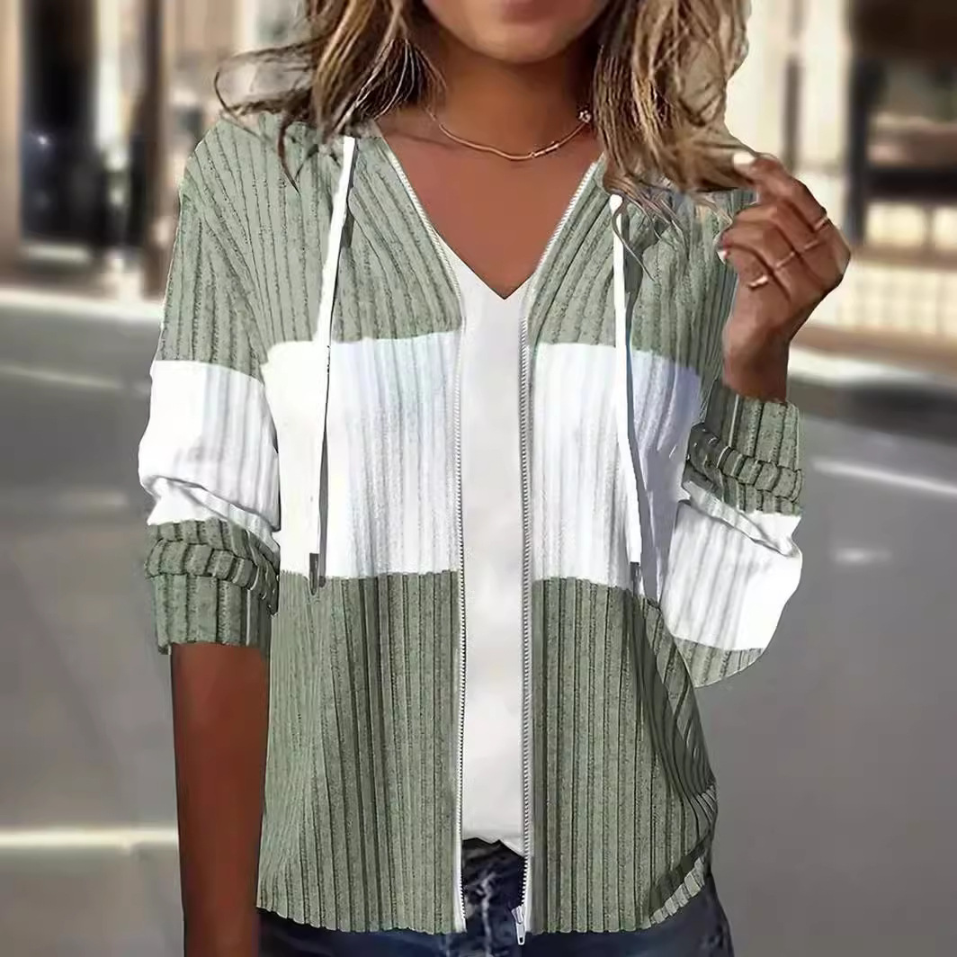 European and American Cross-border Explosions Contrast Color Sweats 2024 Women's Fashion regular Version Vertical Stripe Hooded Casual Jacket