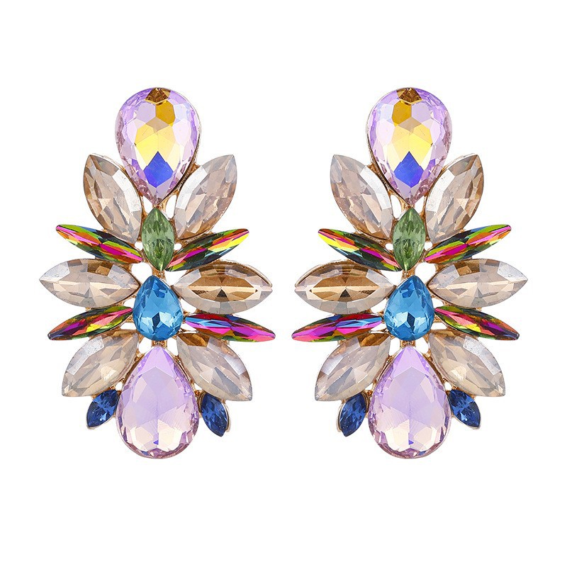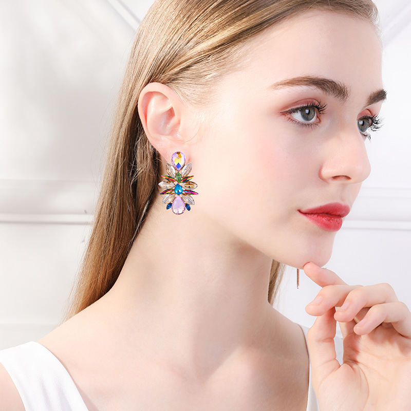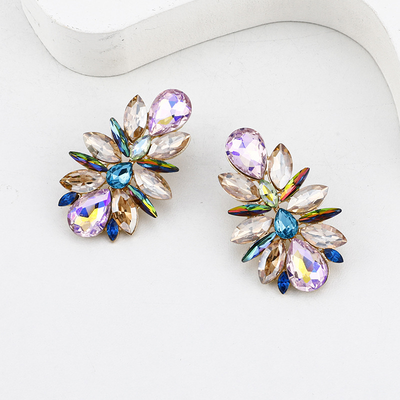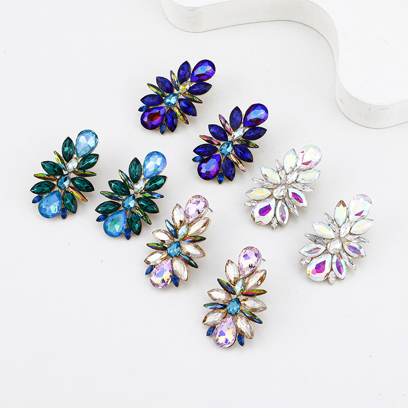 | nameOriginal | European and American cross-border fashion colored diamond alloy diamond flower earrings trendy women's high-grade Party earrings cross-border wholesale |