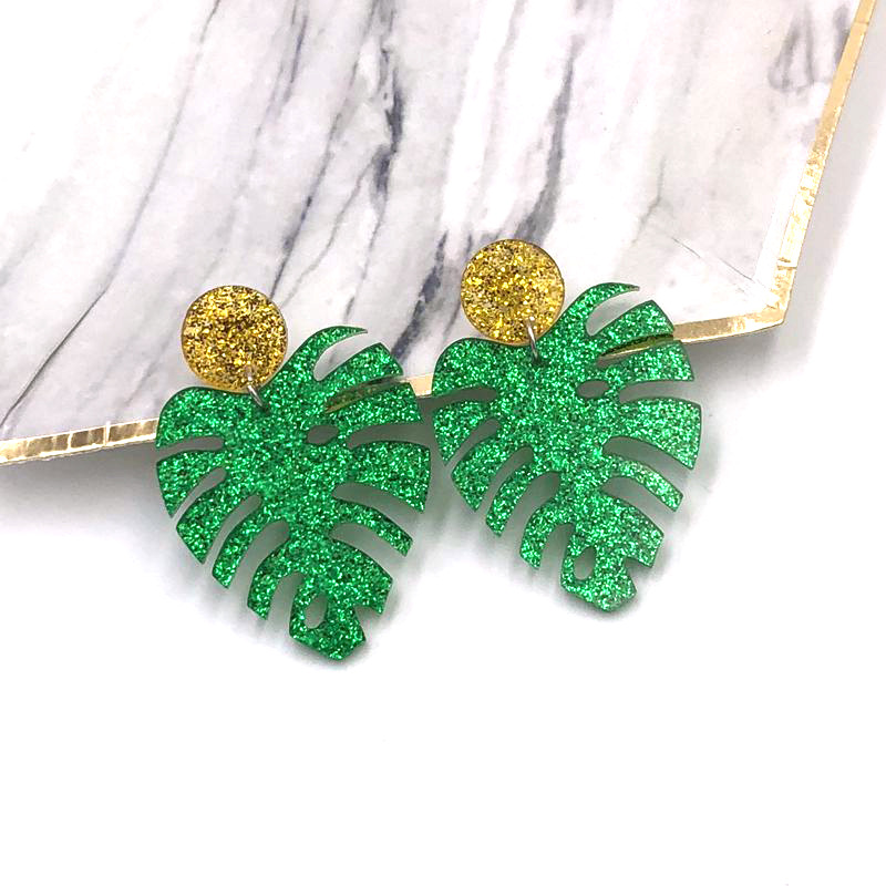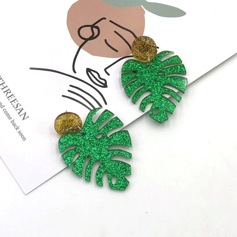 | nameOriginal | European and American cross-border fashion exaggerated acrylic earrings long green leaf earrings big earrings for women |
