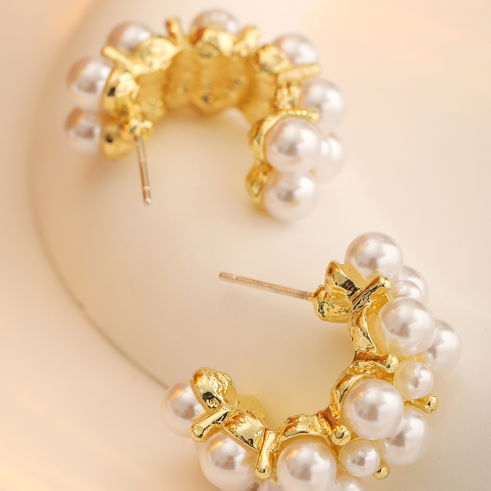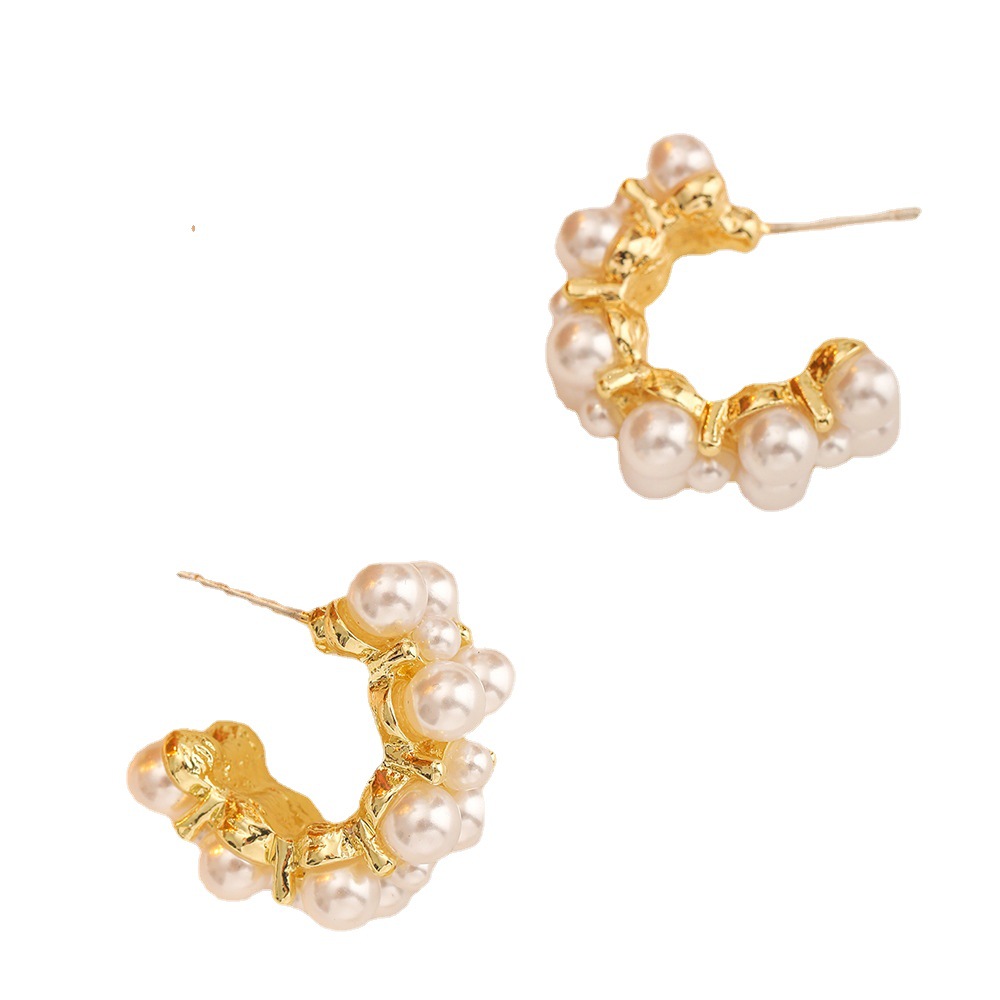 | nameOriginal | European and American Cross-border Fashion Exaggerated Light Luxury Retro High-end Sense Gold C- shaped Pearl Earrings |