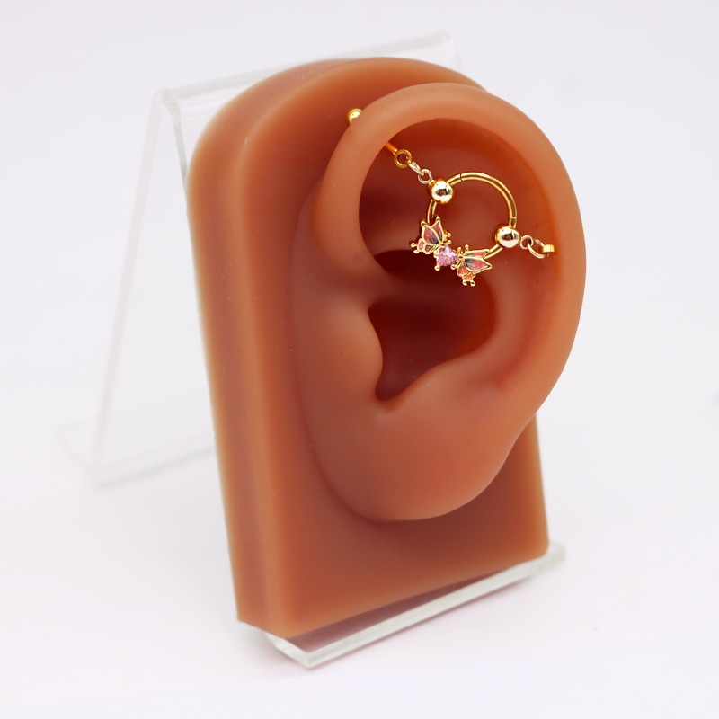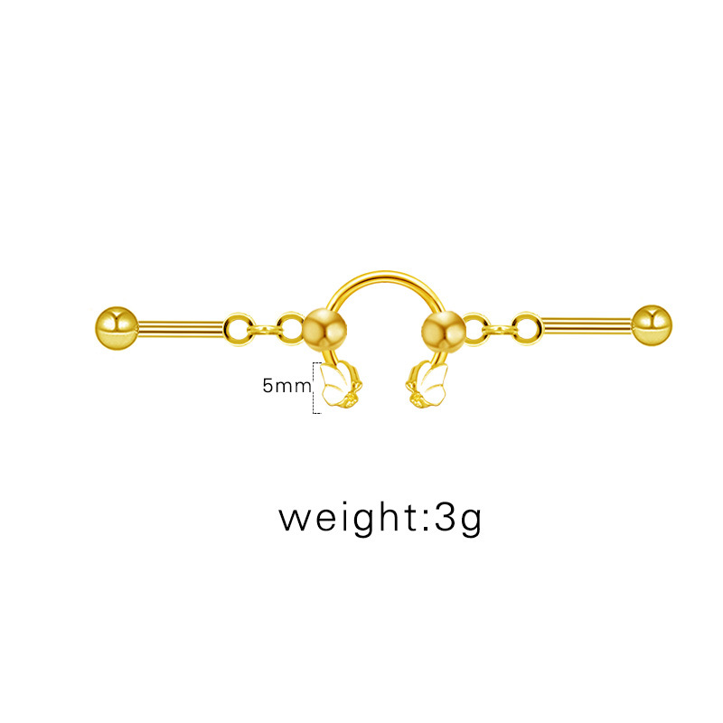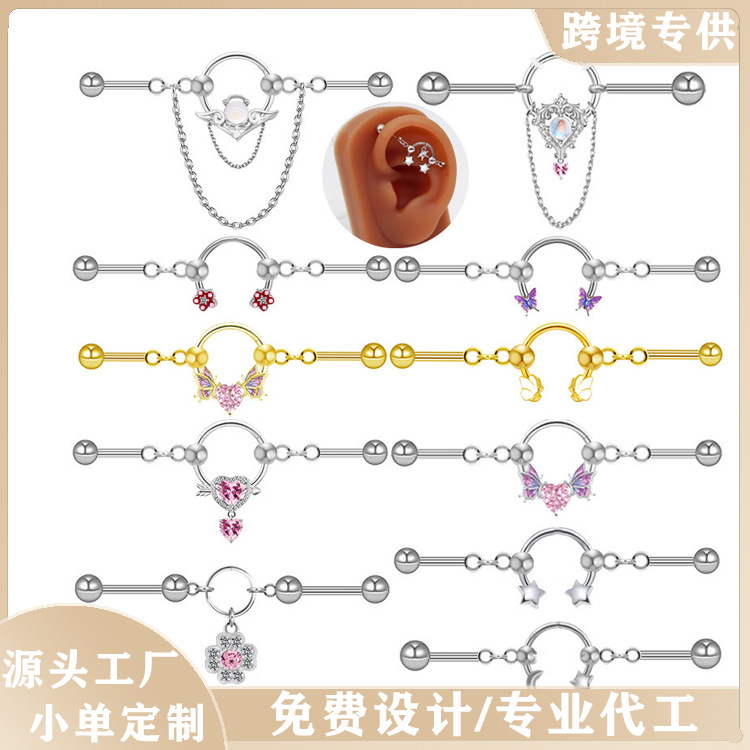 European and American cross-border fashion heart-shaped butterfly ear bone nail ear Bridge Industrial barbell puncture jewelry