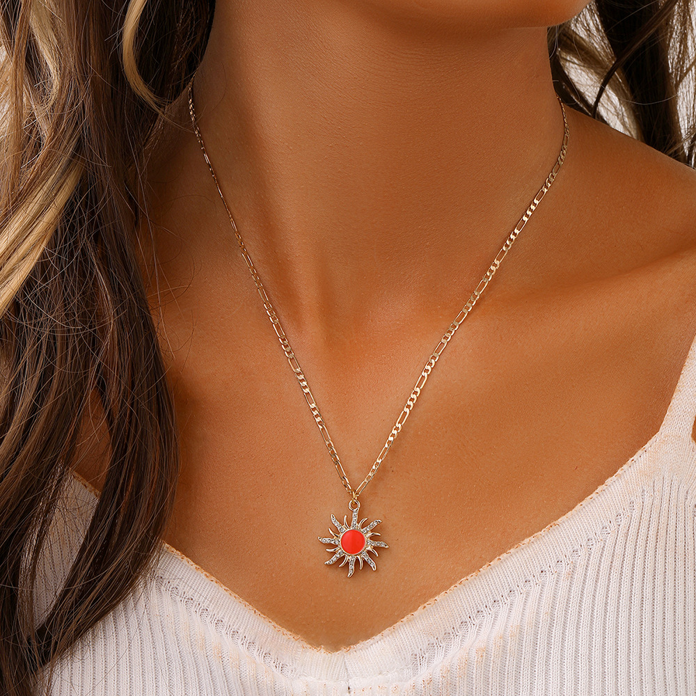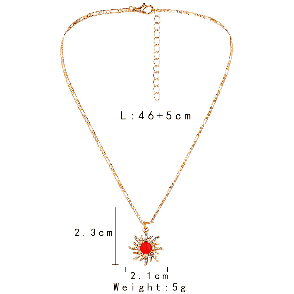 | nameOriginal | European and American cross-border fashion personalized design versatile light luxury retro women's red sun pendant necklace |