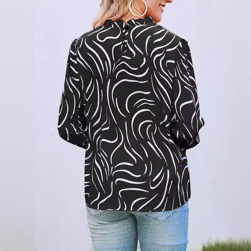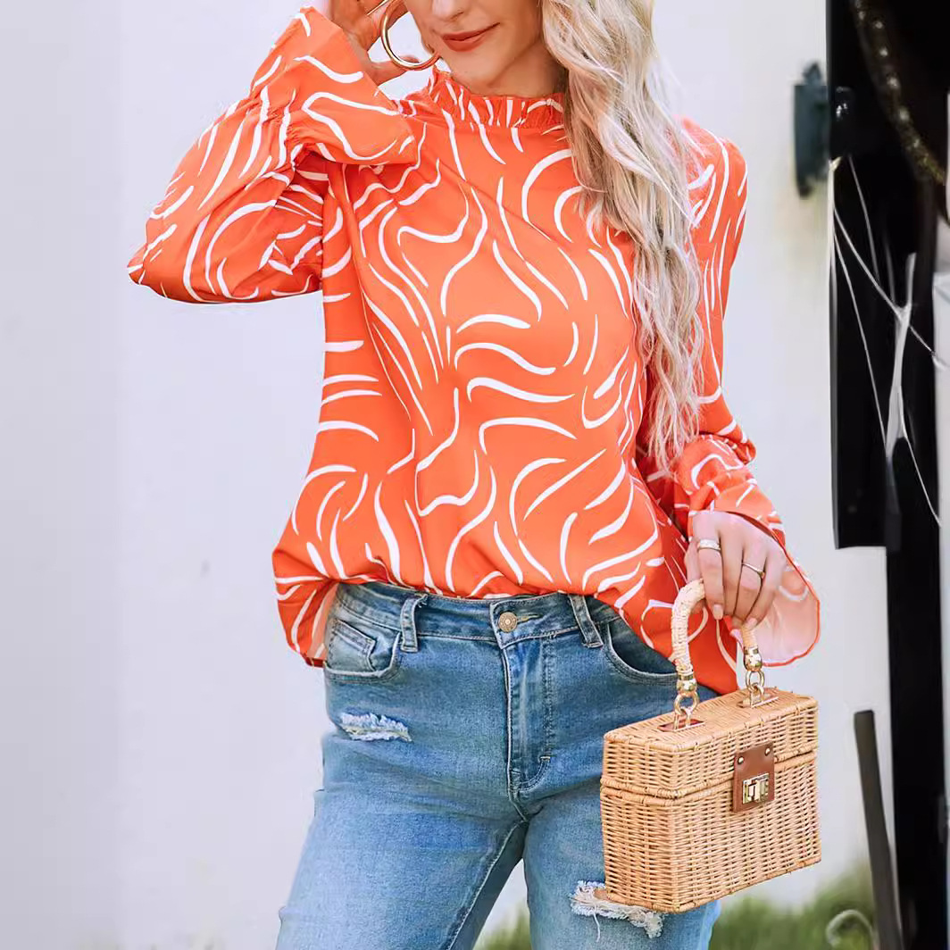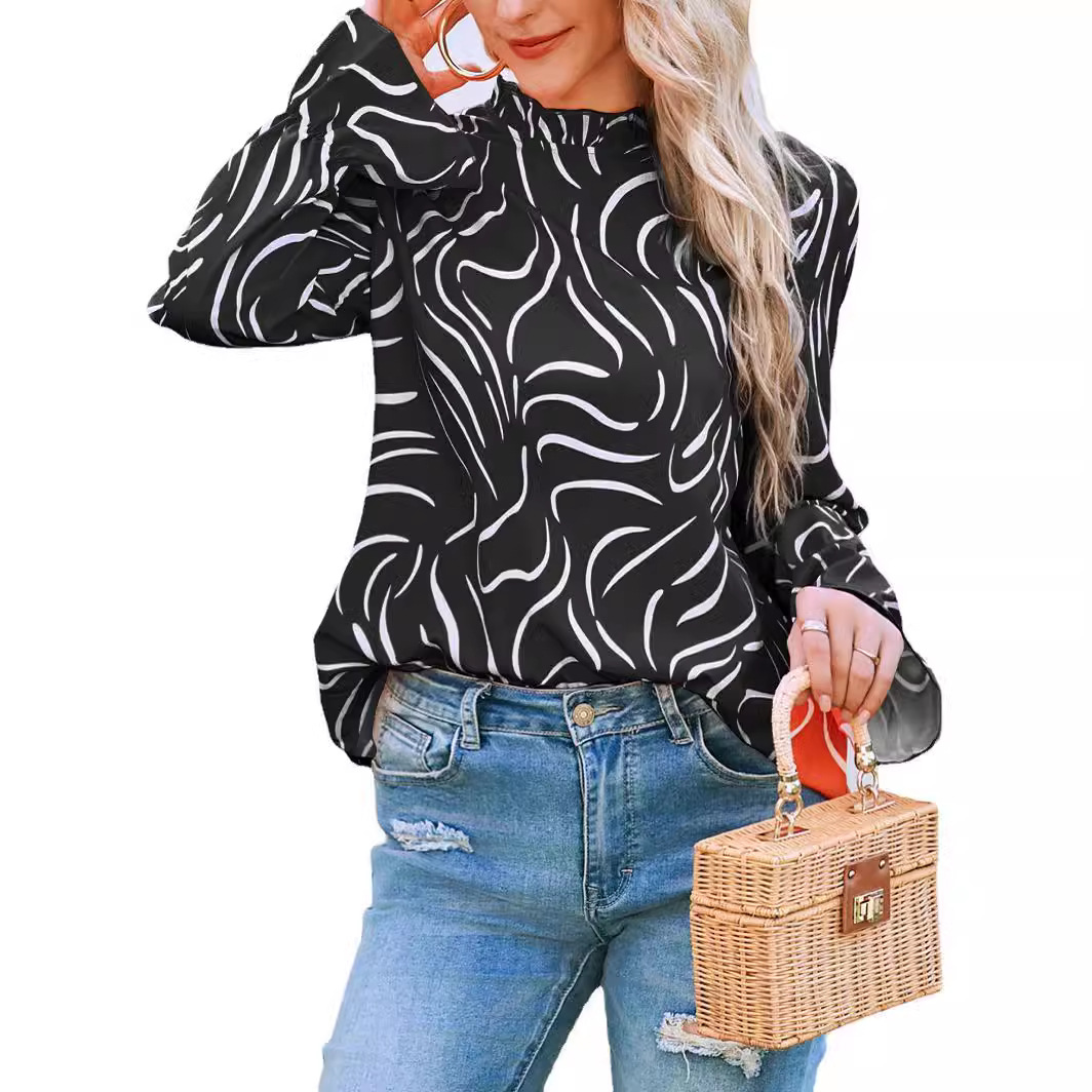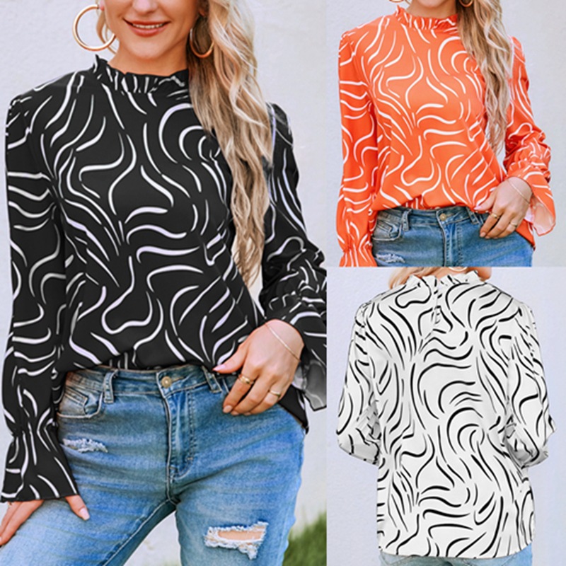 | nameOriginal | European and American cross-border foreign trade AliExpress Amazon 2023 autumn water ripple printed bell sleeve casual long-sleeved top |