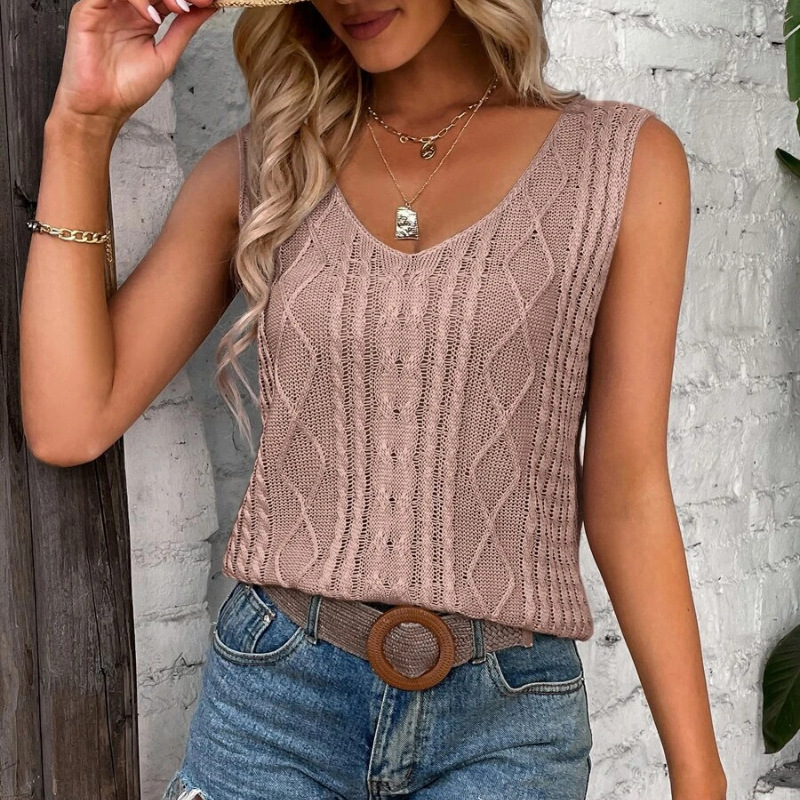 | nameOriginal | European and American cross-border foreign trade V-neck pullover sleeveless vest women's Amazon summer solid color twist outer wear knitted vest |