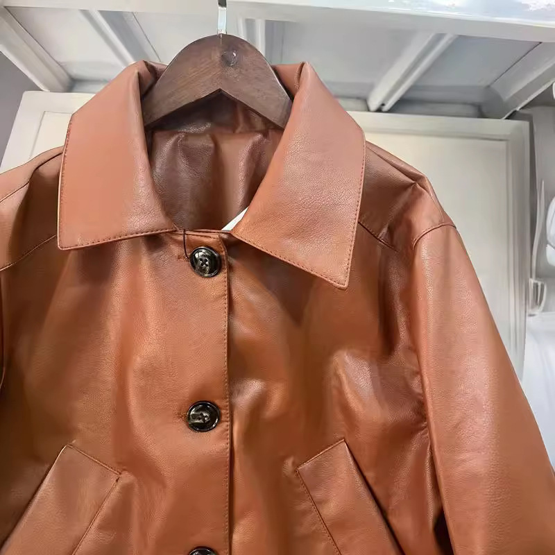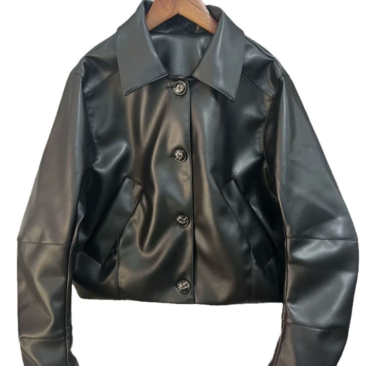 | nameOriginal | European and American Cross-border Foreign Trade Women's 2024 Autumn New Style Temperament All-match Lapel Long Sleeve Buckle PU Leather Jacket |