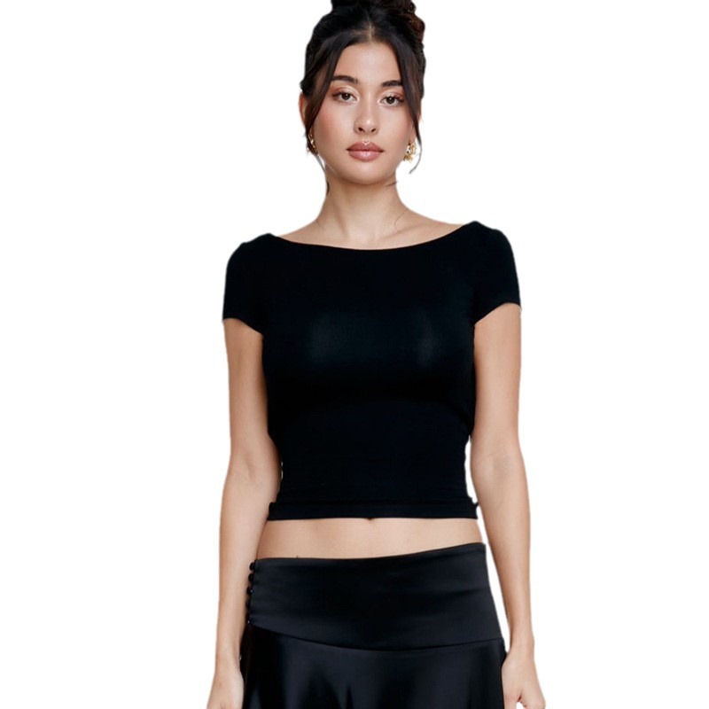 | nameOriginal | European and American Cross-border Foreign Trade Women's 2024 Summer Sexy Elegant Backless Short T-shirt Solid Color Street Spice Girl Top |