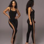 European and American cross-border foreign trade women’s clothing 2023 spring and autumn I-shaped vest jumpsuit Sexy Slim mesh stitching jumpsuit