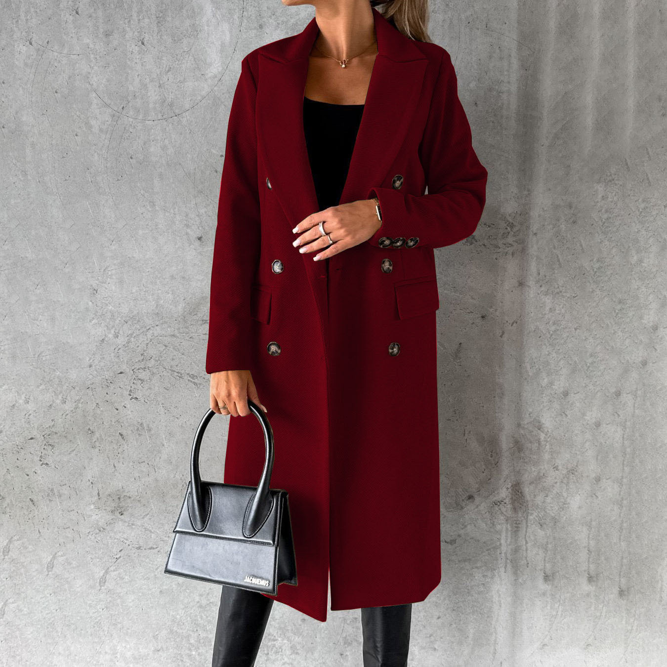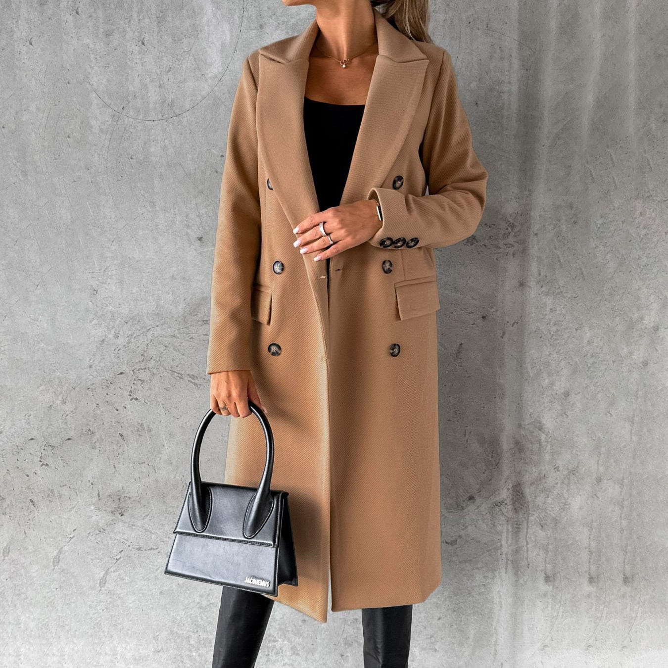 | nameOriginal | European and American cross-border foreign trade women's clothing Amazon 2024 autumn and winter new long-sleeved lapel double-breasted slim coat overcoat |