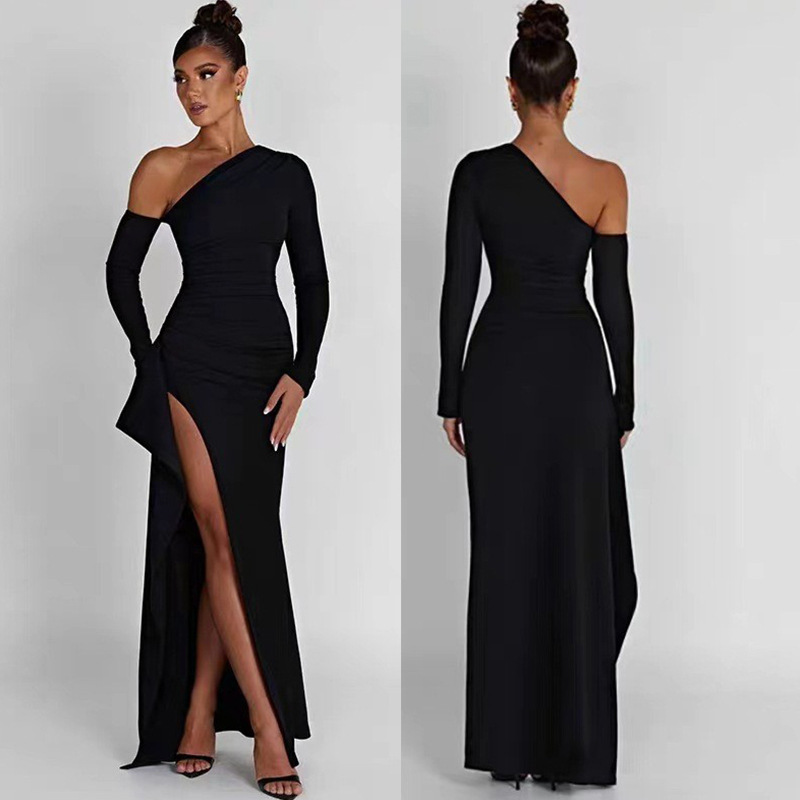 | nameOriginal | European and American cross-border foreign trade Women's independent station 2024 spring and summer sexy elegant oblique collar single sleeve split dress dress |