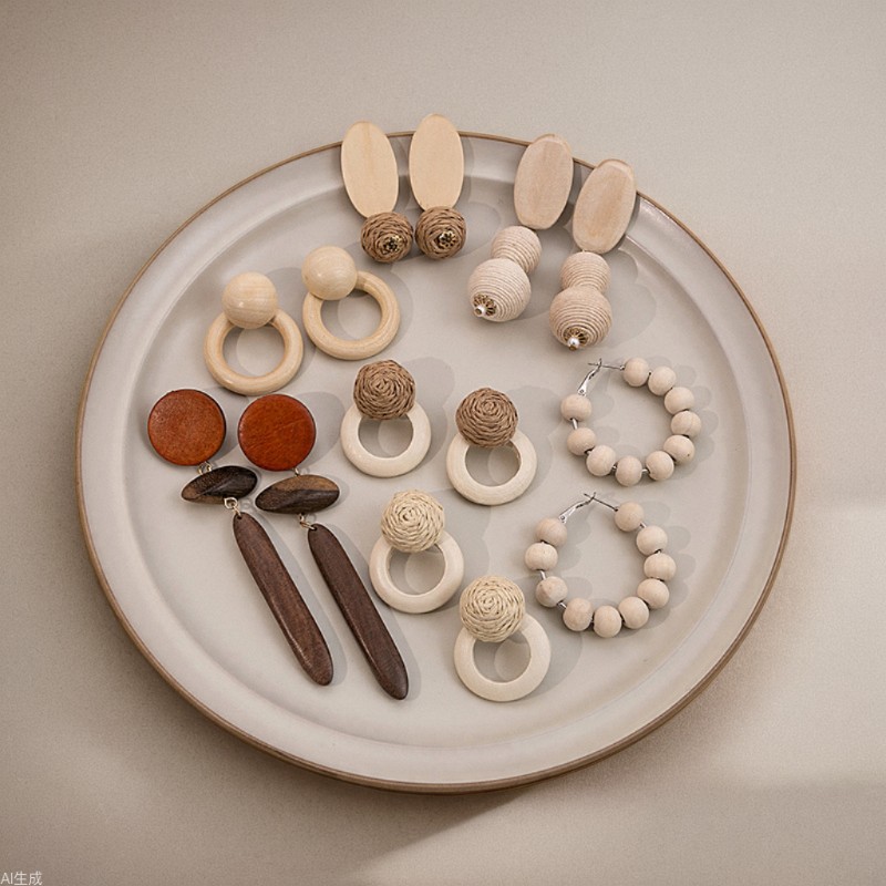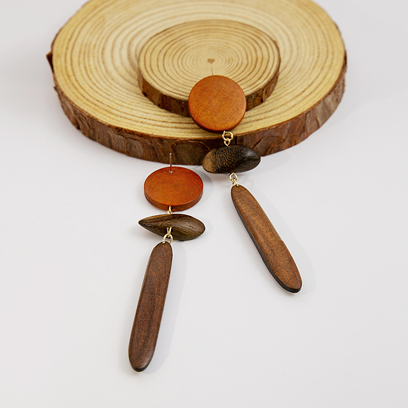 | nameOriginal | European and American cross-border geometric wooden earrings retro simple round color matching earrings hollow wood tassel earrings |