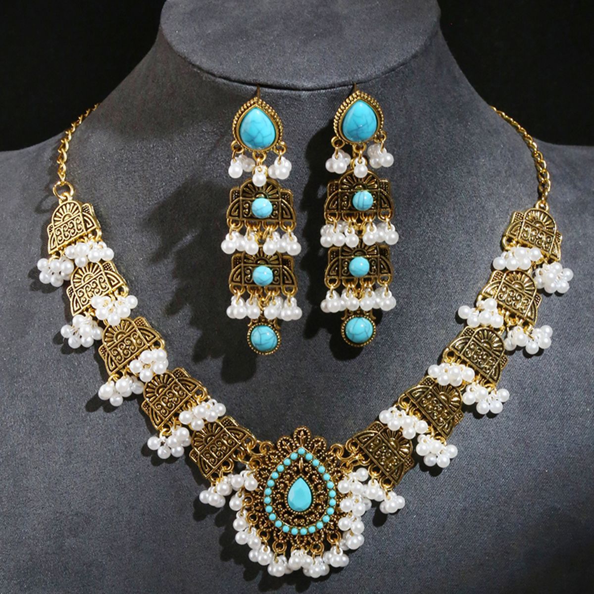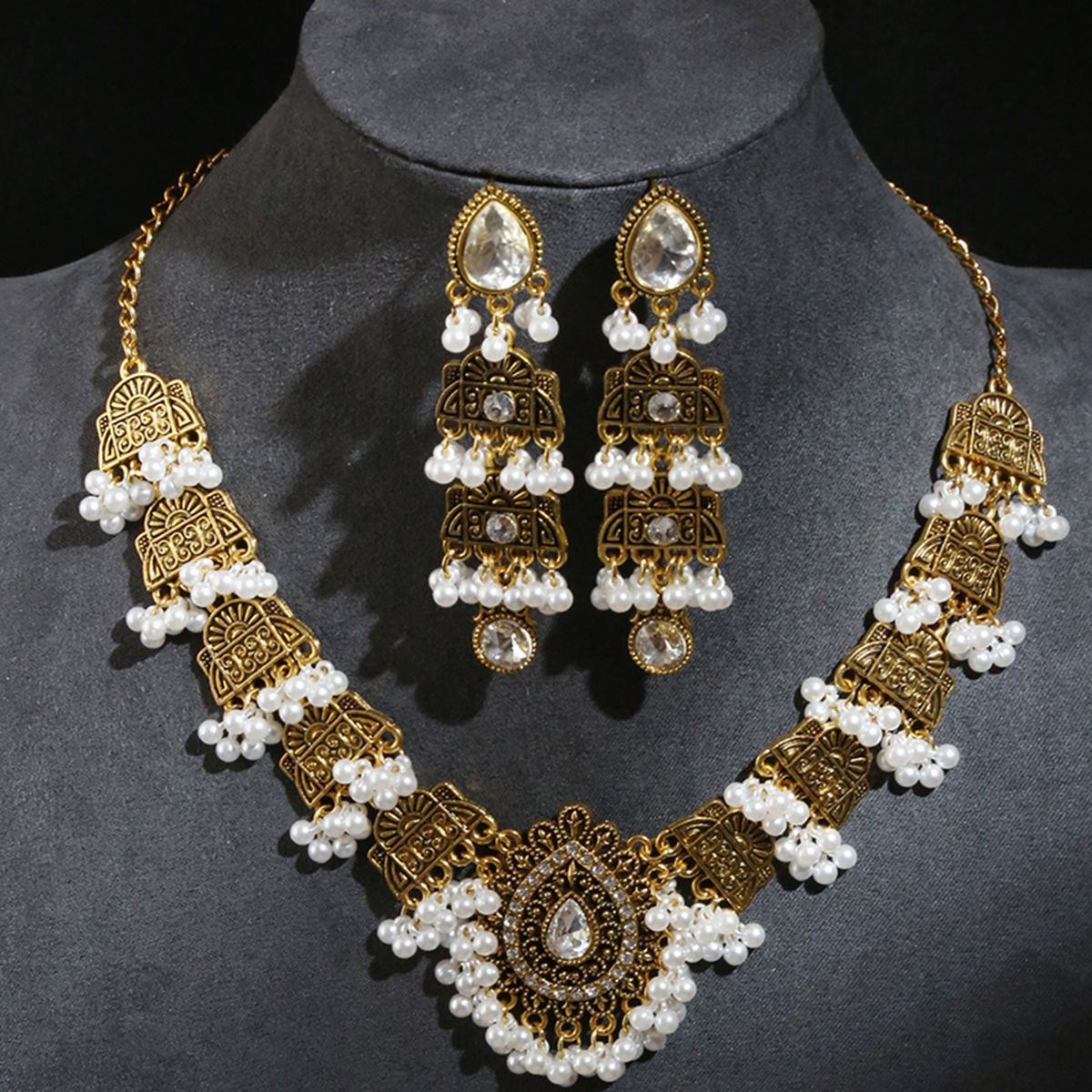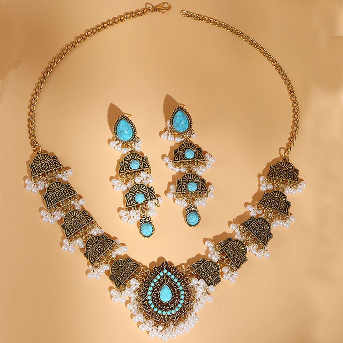 | nameOriginal | European and American Cross-border Helios Exotic Necklace Chain Women's Light Luxury Pearl Tassel Diamond Necklace Earrings suit Jewelry |