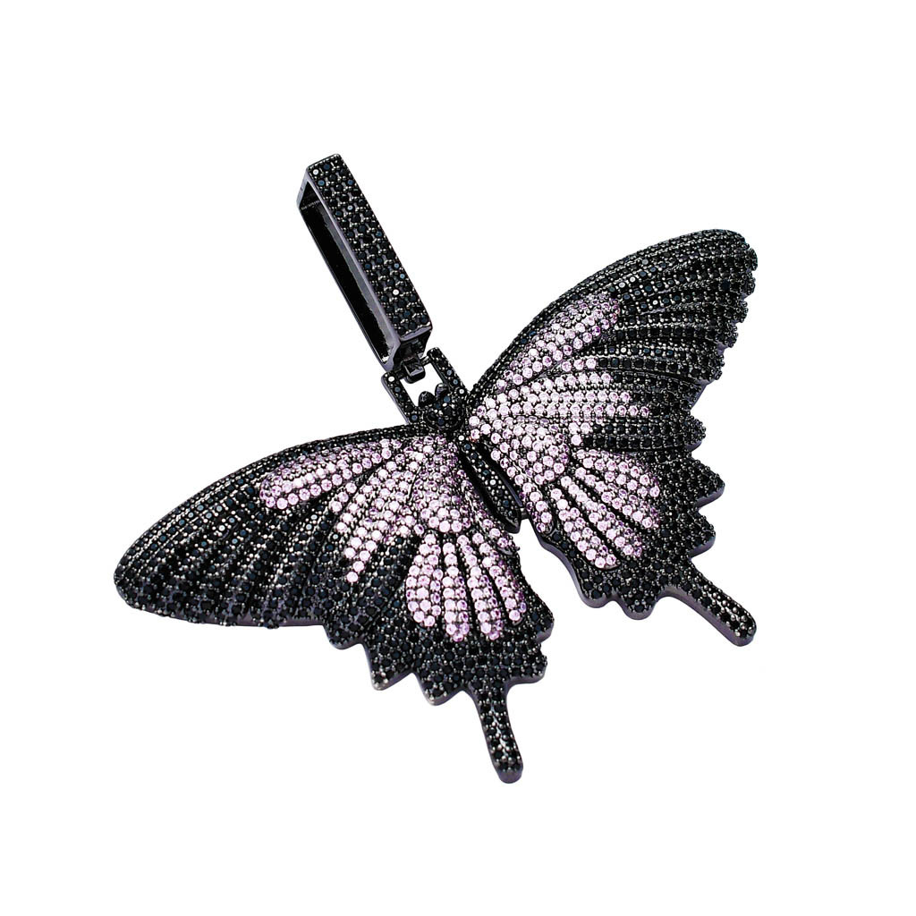| nameOriginal | European and American Cross-border Hip Hop Butterfly Pendant Micro-inlaid Zircon Color Butterfly Purple Blue Black Personality Rapper |
