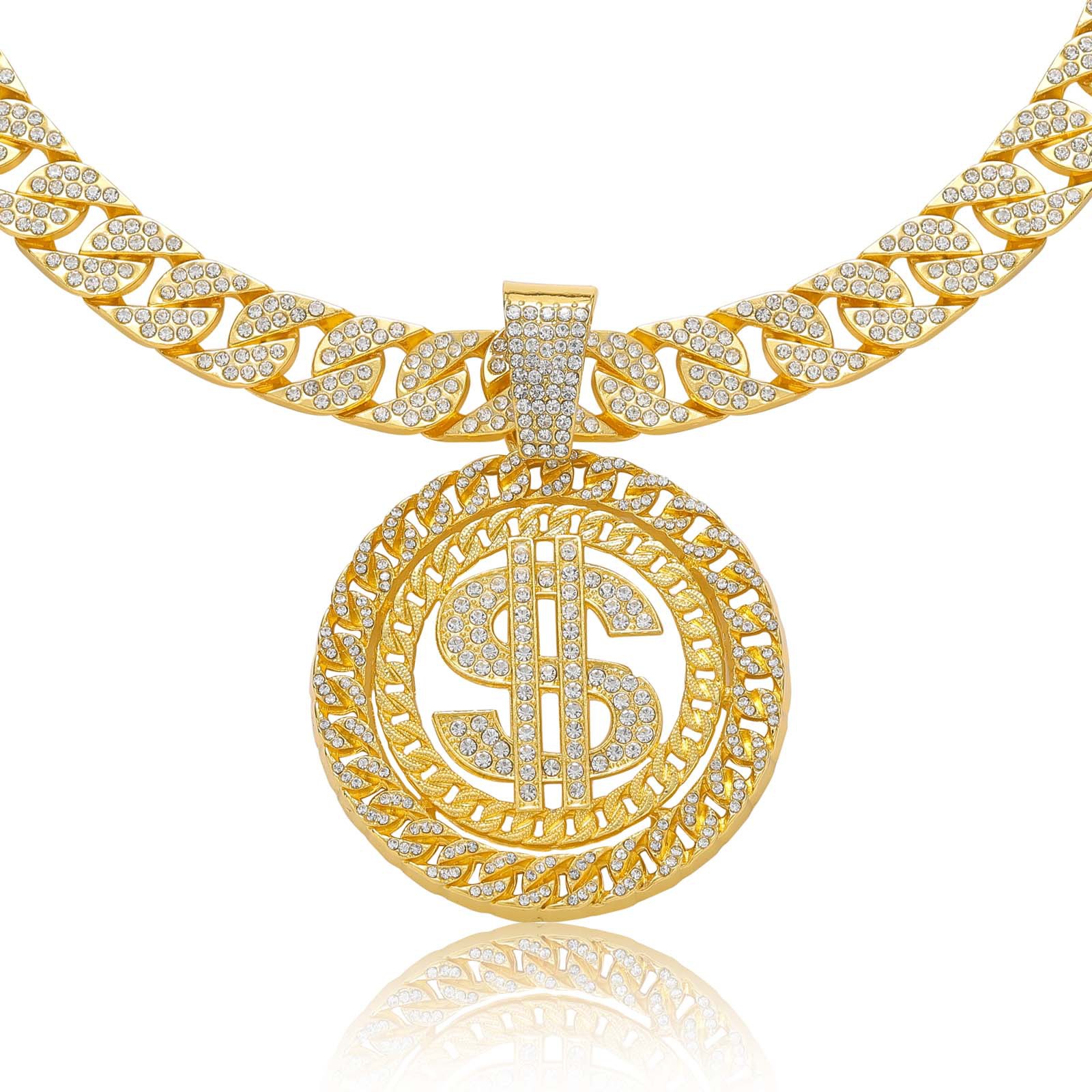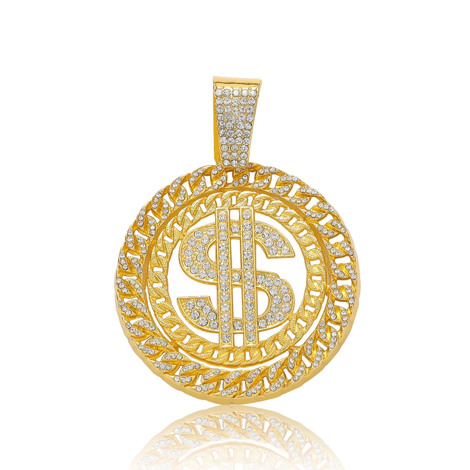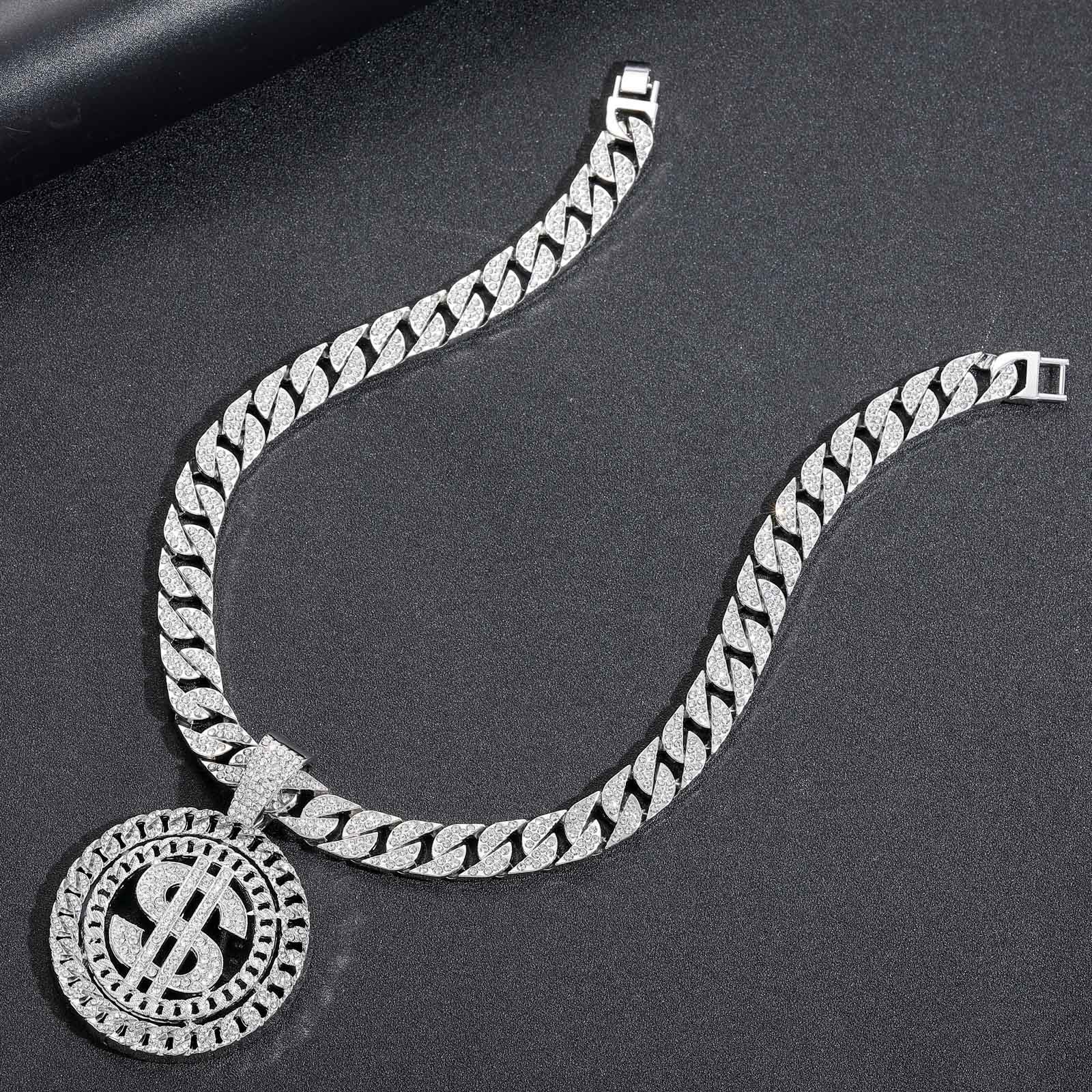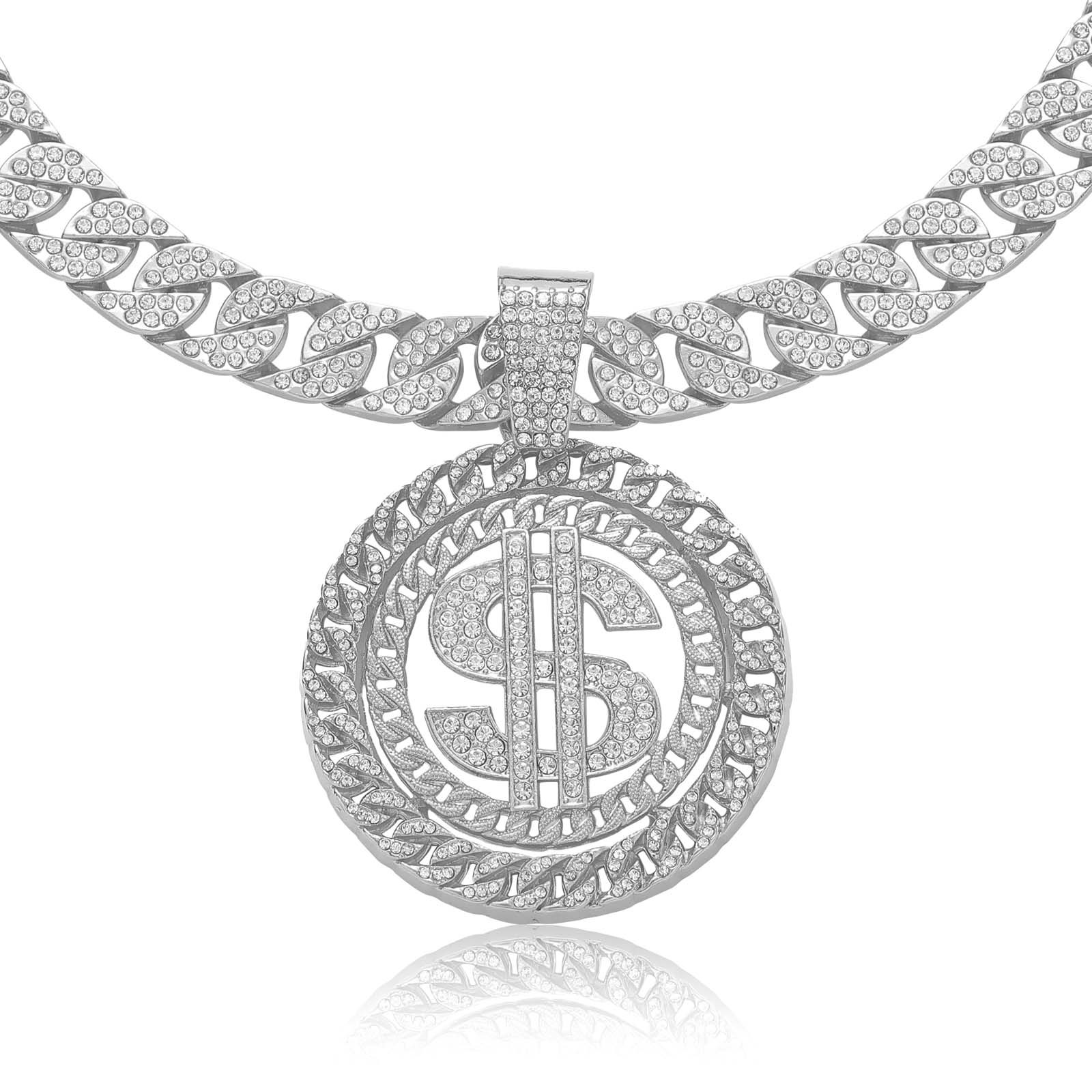 | nameOriginal | European and American cross-border hip hop dollar disc pendant with diamond alloy trendy men's hip hop Cuban chain US dollar necklace |