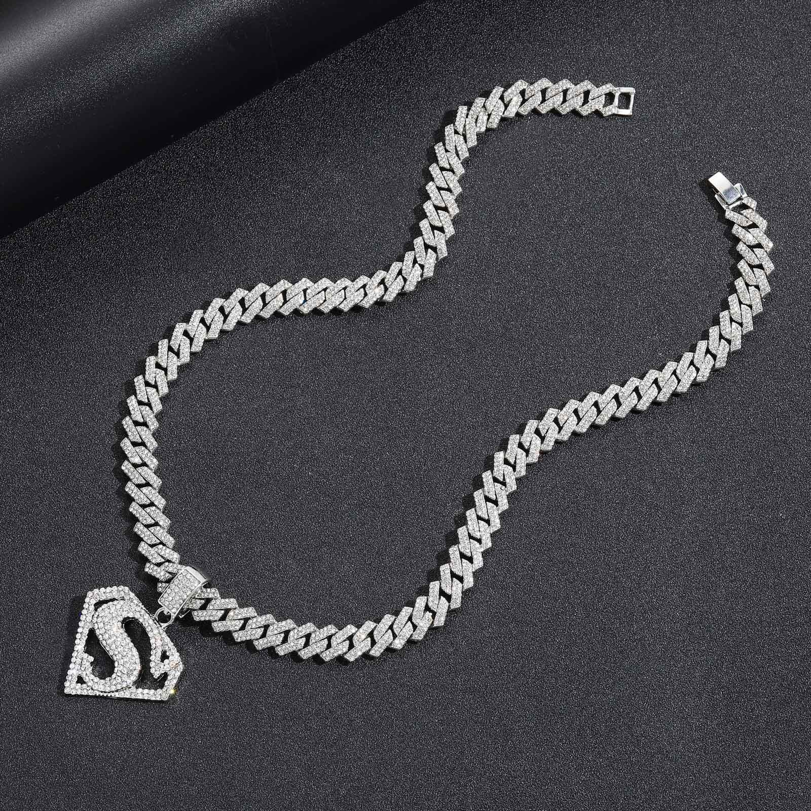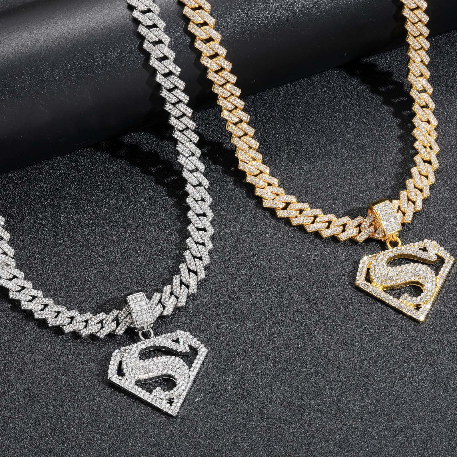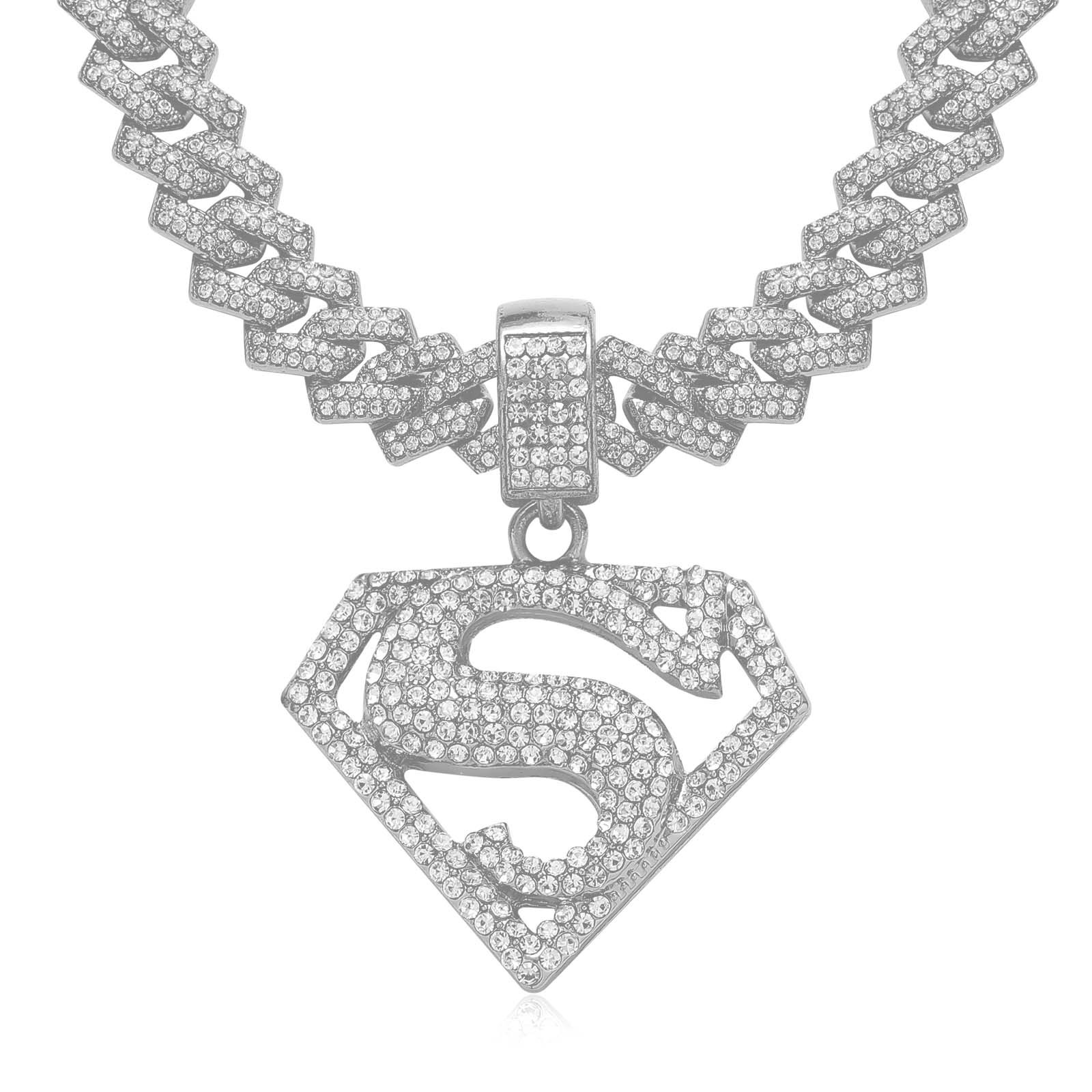 | nameOriginal | European and American cross-border hip hop necklace S Superman symbol pendant with diamond personality men's hip hop Cuban chain accessories |