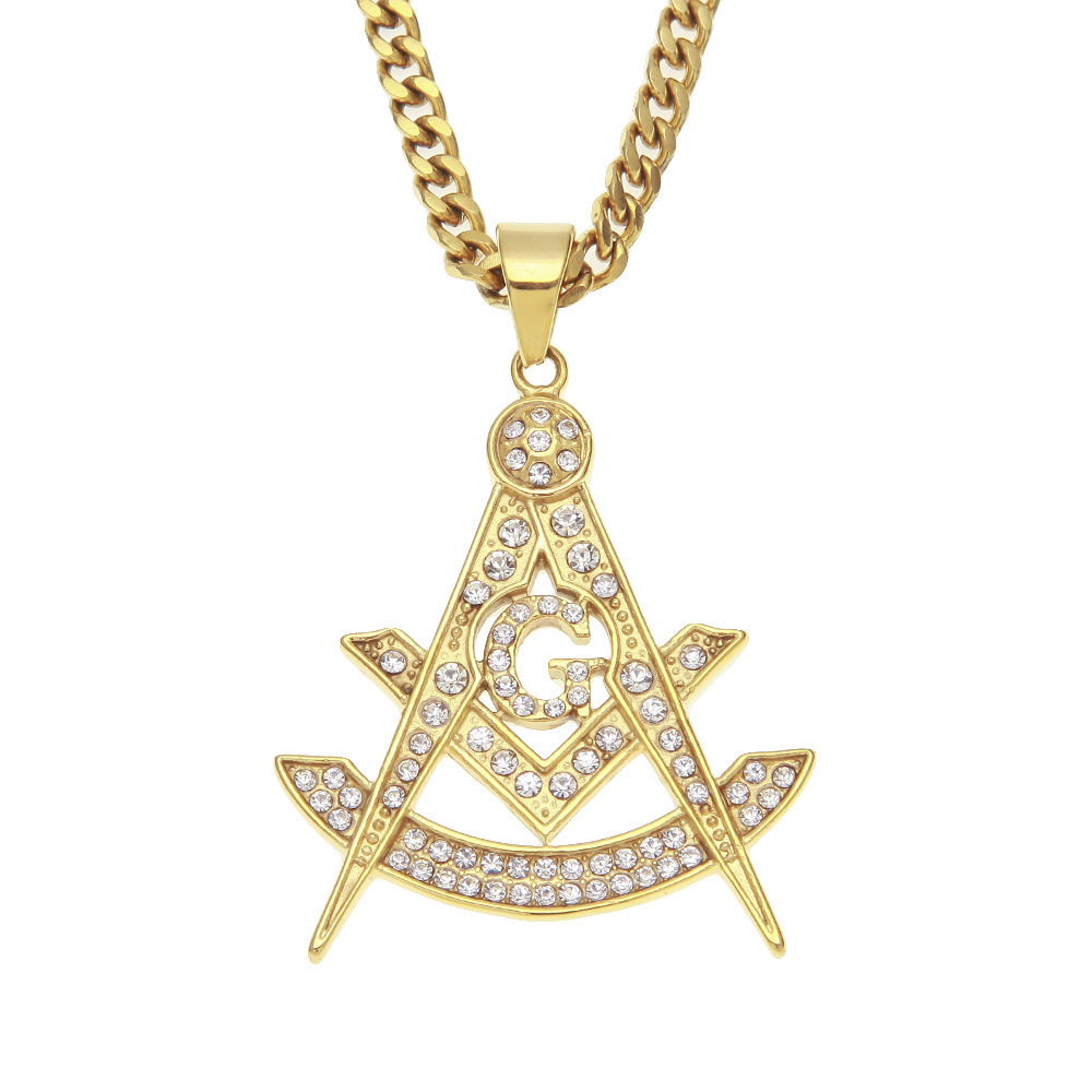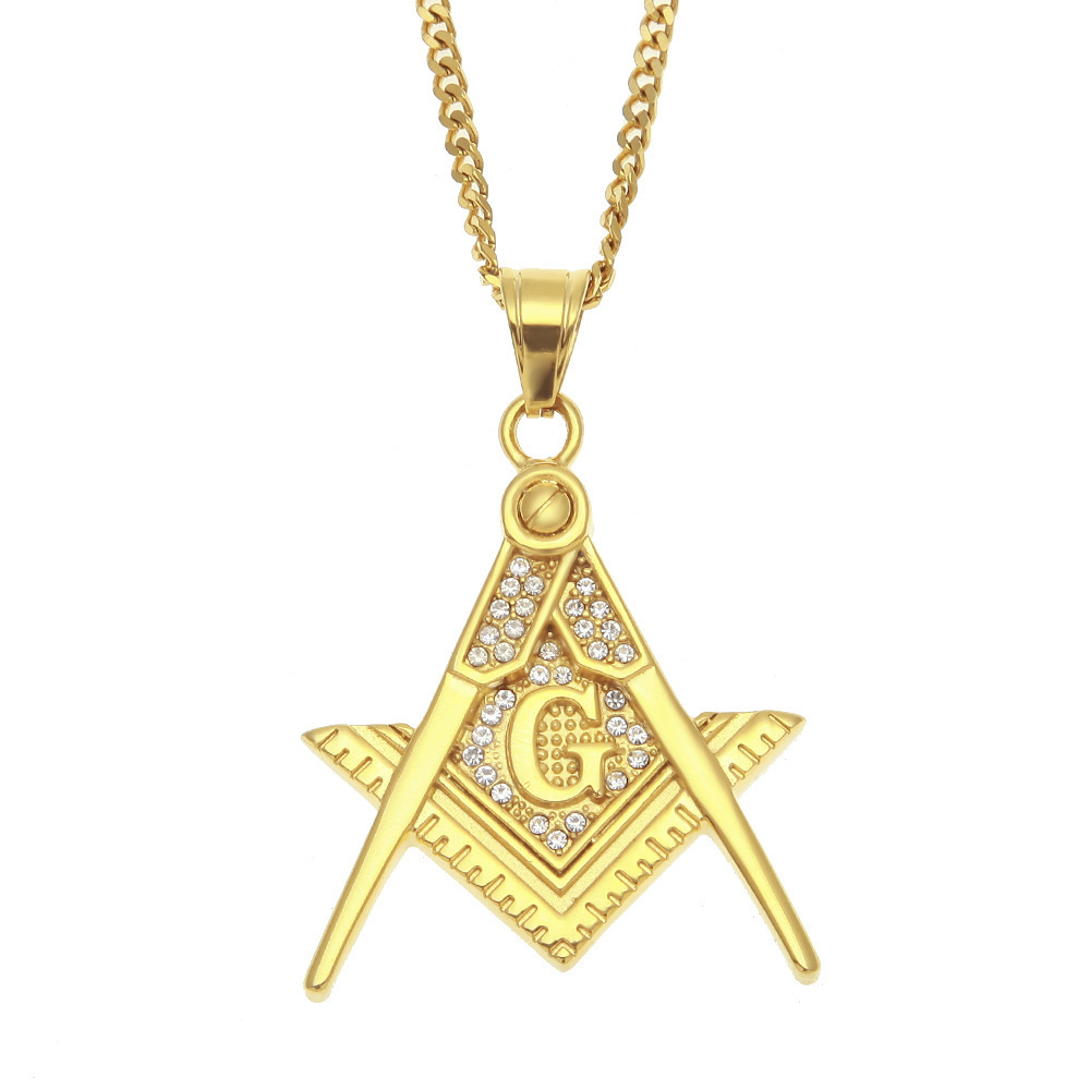 | nameOriginal | European and American cross-border HIPHOP stainless steel gold plated rhinestone AG Masonic pendant jewelry necklace hip hop trend |