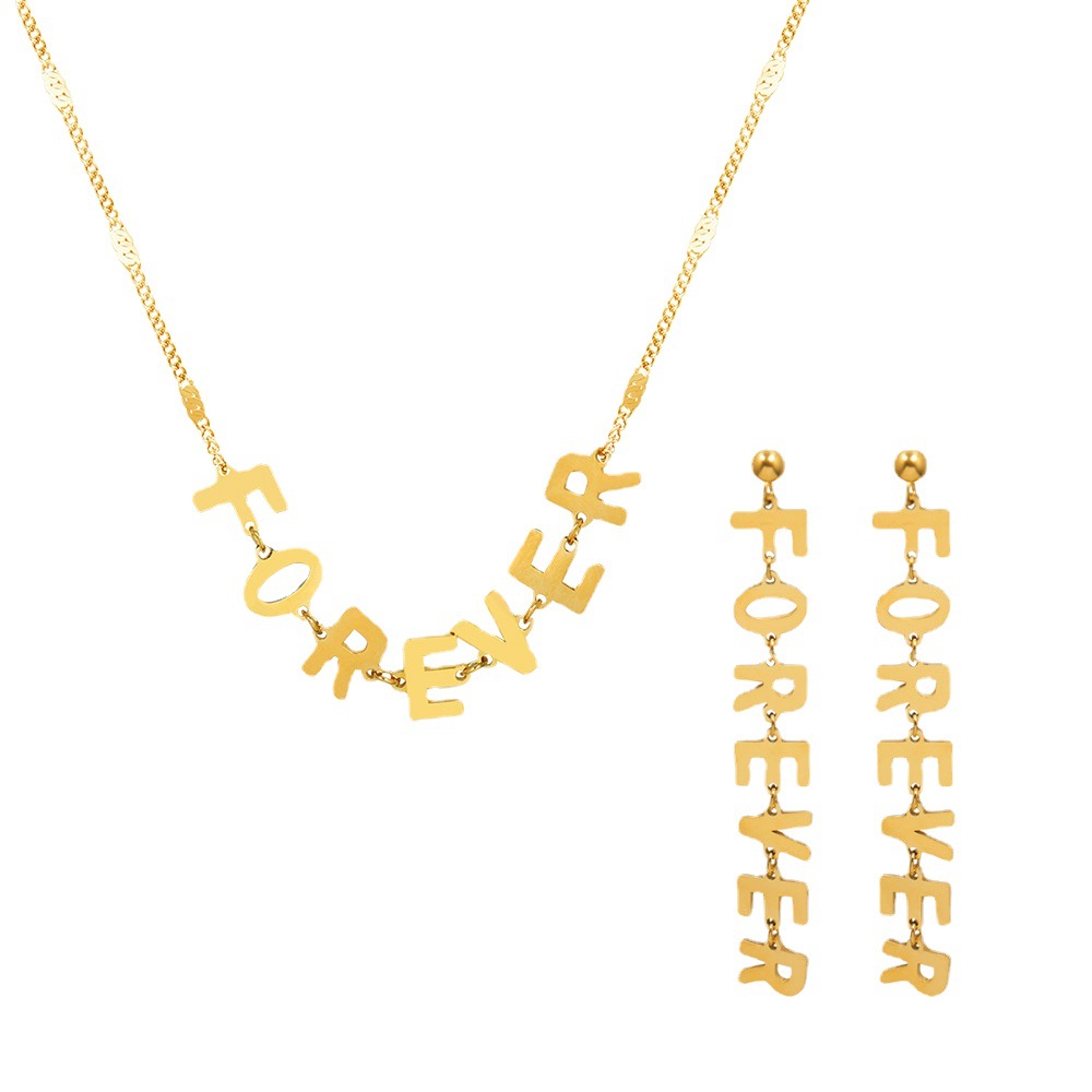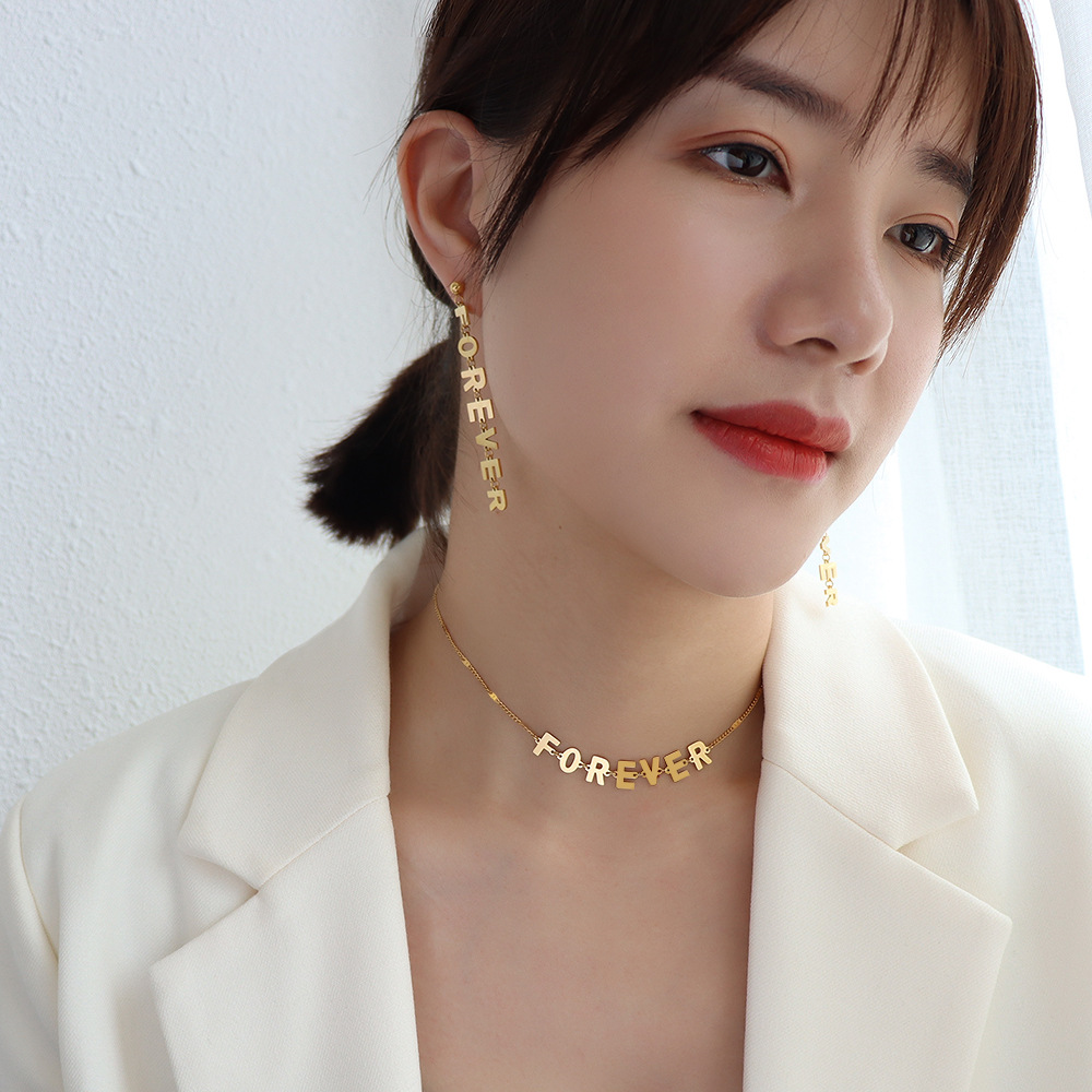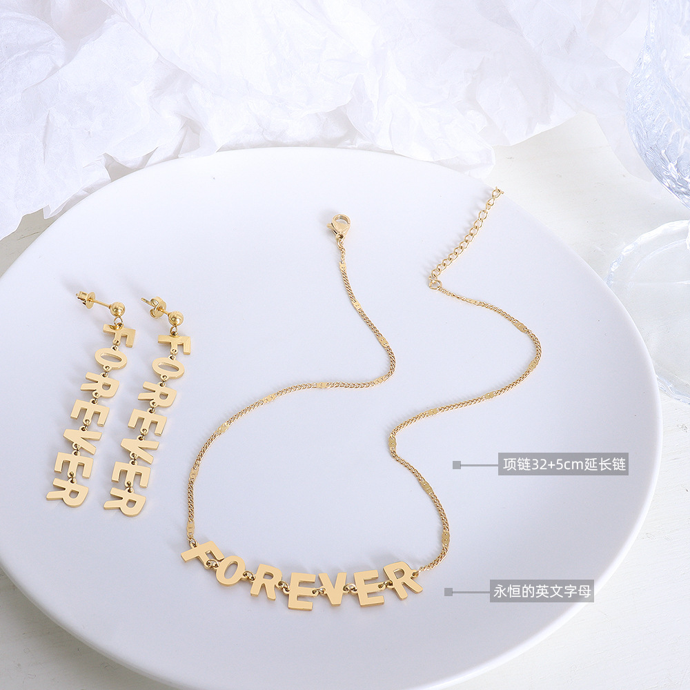 European and American Cross-border Hot Personalized Letter Earrings Necklace Set Titanium Steel Plated 18K Gold ins Hip-hop Letter Necklace for Women