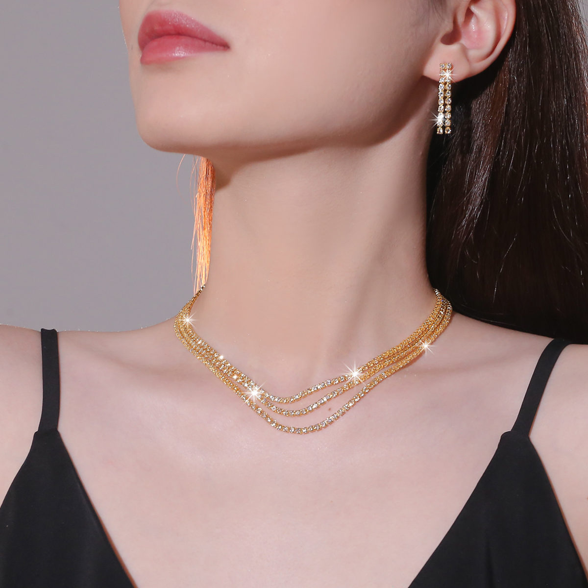 | nameOriginal | European and American cross-border hot sale diamond shiny necklace earrings two-piece wedding banquet dress accessories fashion jewelry suit |