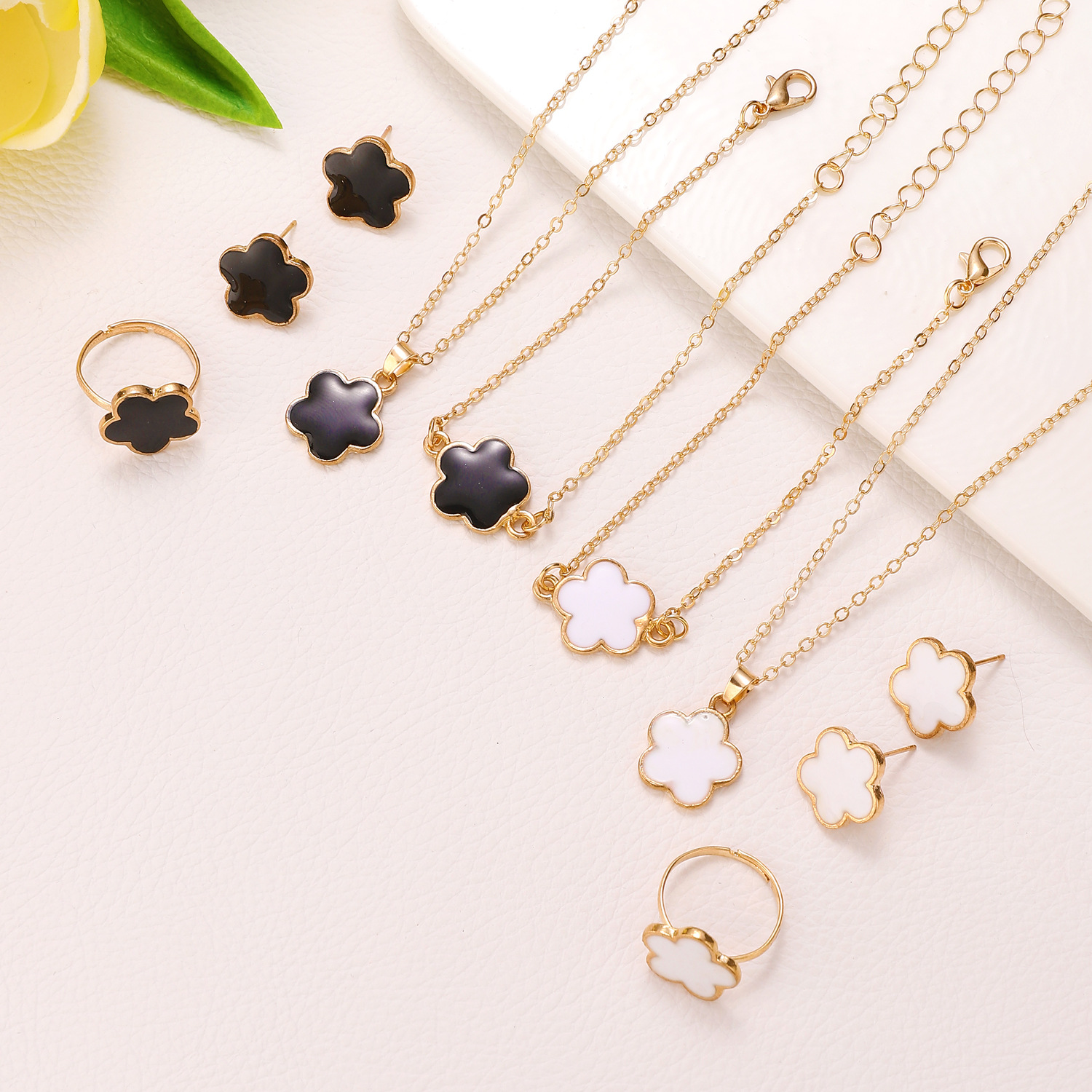 | nameOriginal | European and American Cross-border Hot Selling Five-leaf Clover Jewelry suit Women's Simple Petal Necklace Bracelet Ring Earrings 4-piece Set |