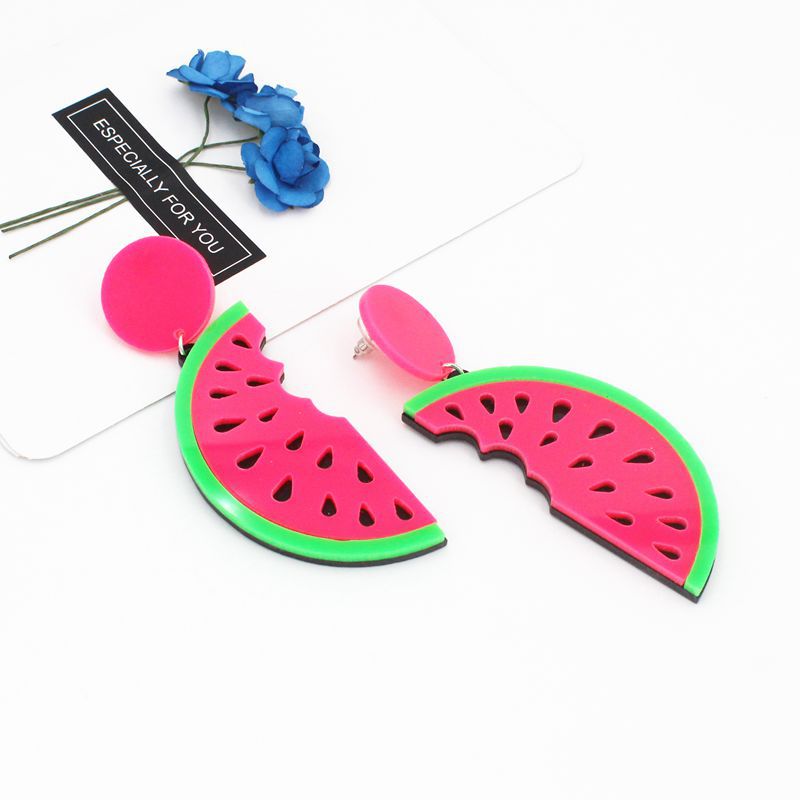 European and American cross-border internet celebrity jewelry personalized simulation fruit acrylic long big watermelon ear studs earrings