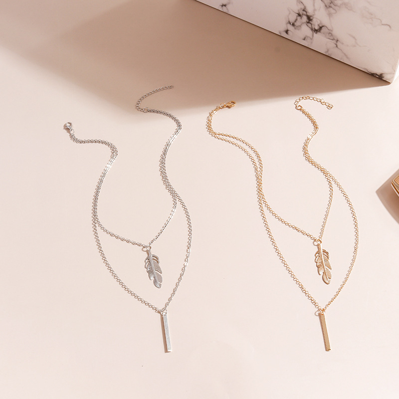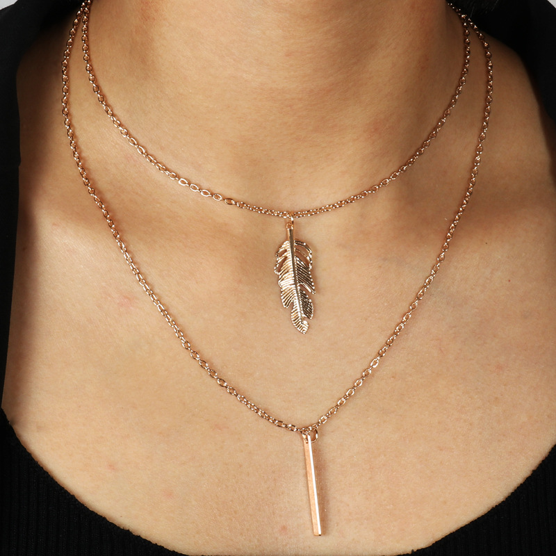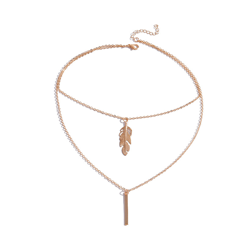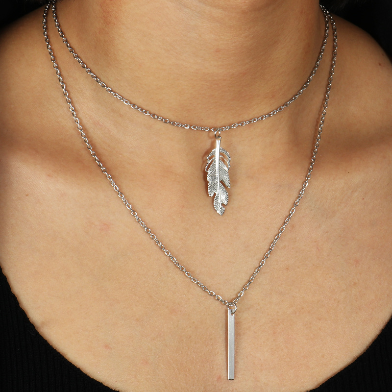 European and American Cross-border Jewelry Alloy Feather Vertical Necklace Versatile Fashion Personalized Woolen Chain Clavicle Chain