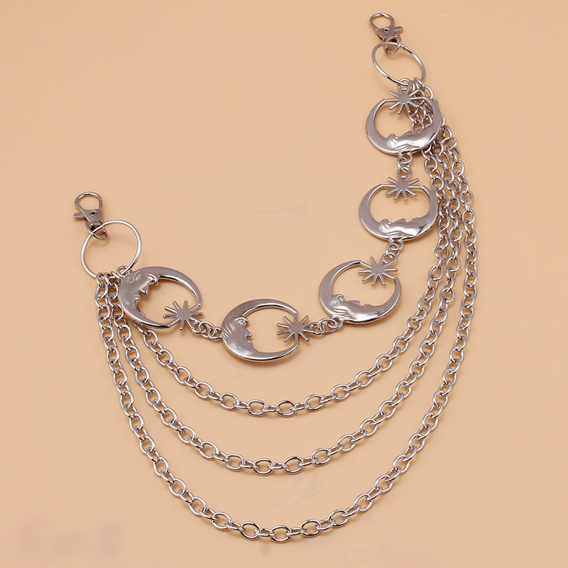 | nameOriginal | European and American cross-border jewelry alloy moon geometric multi-layer chain body chain Women's retro all-match metal pants chain |