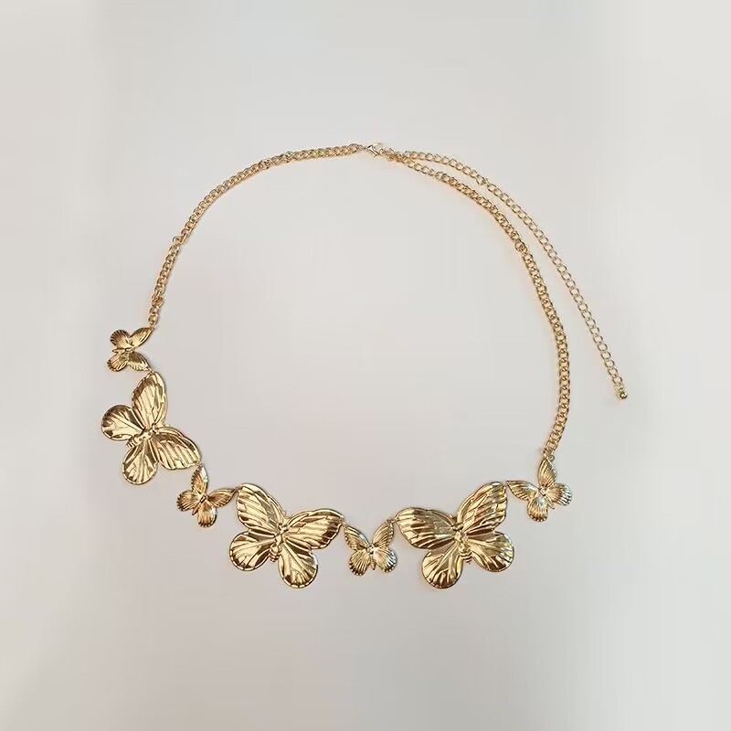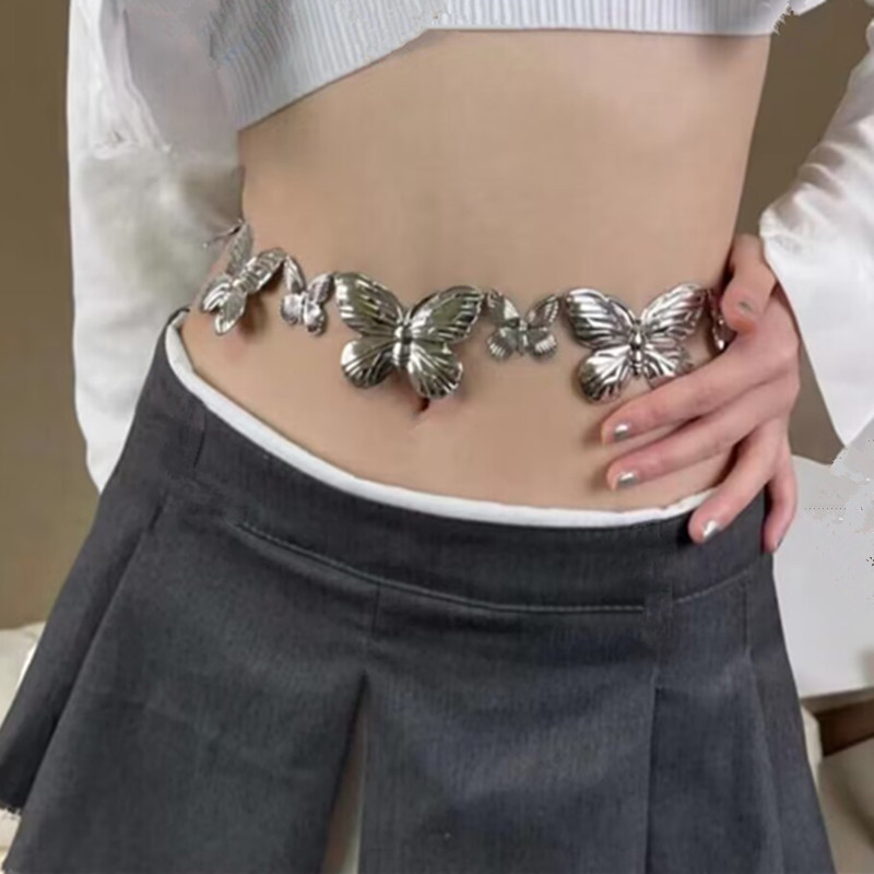 European and American cross-border jewelry creative exaggerated metal single-layer pants chain body chain hip hop punk butterfly tassel waist chain