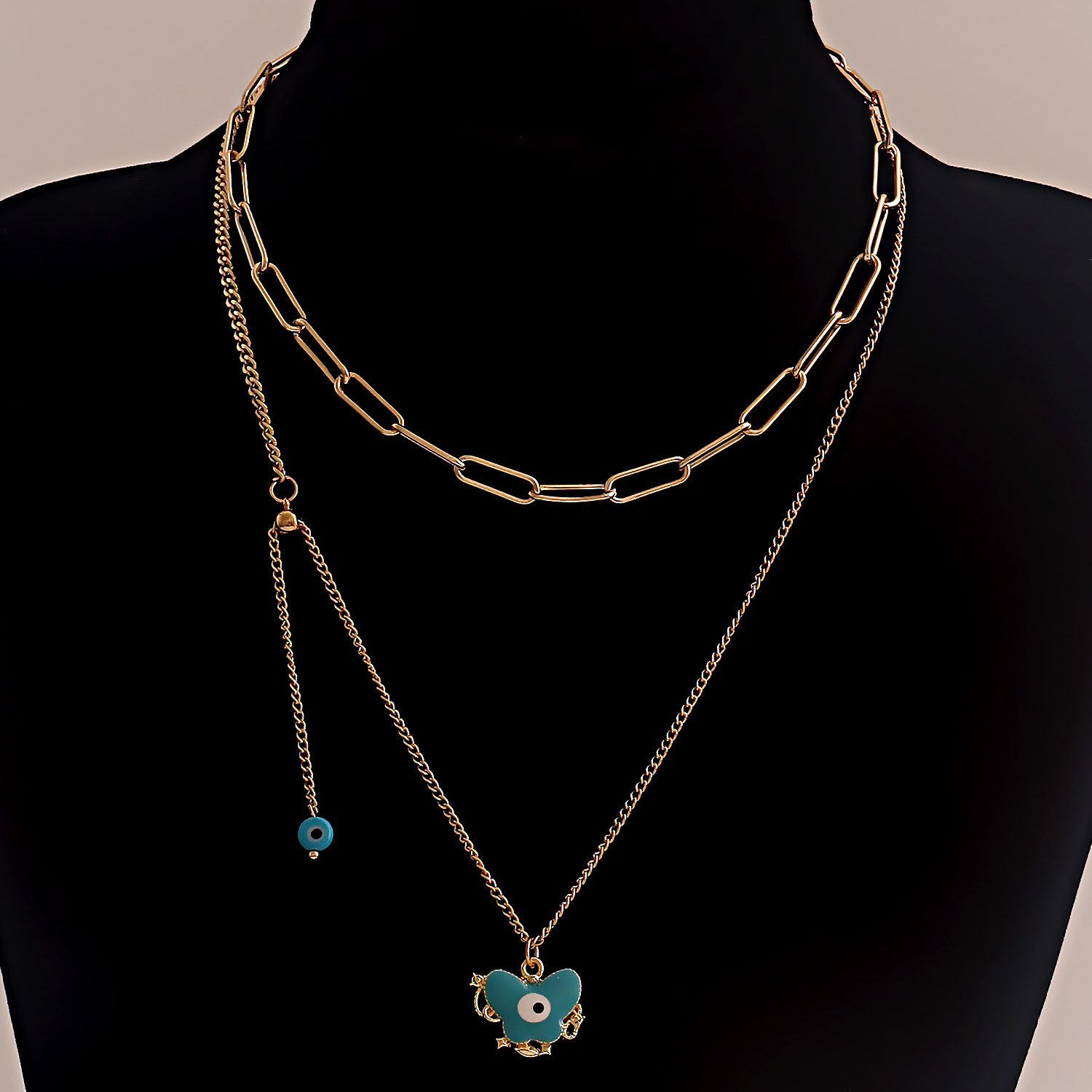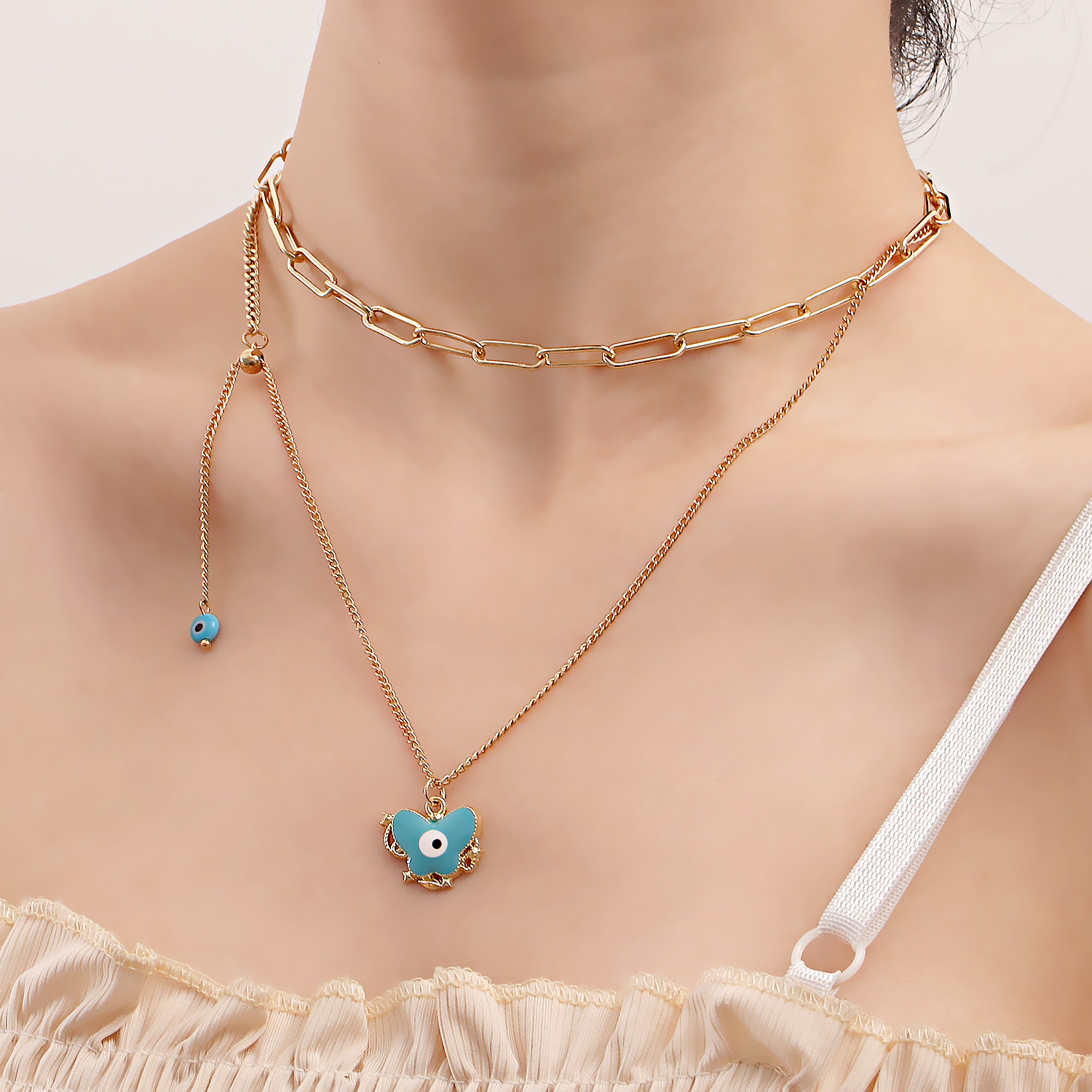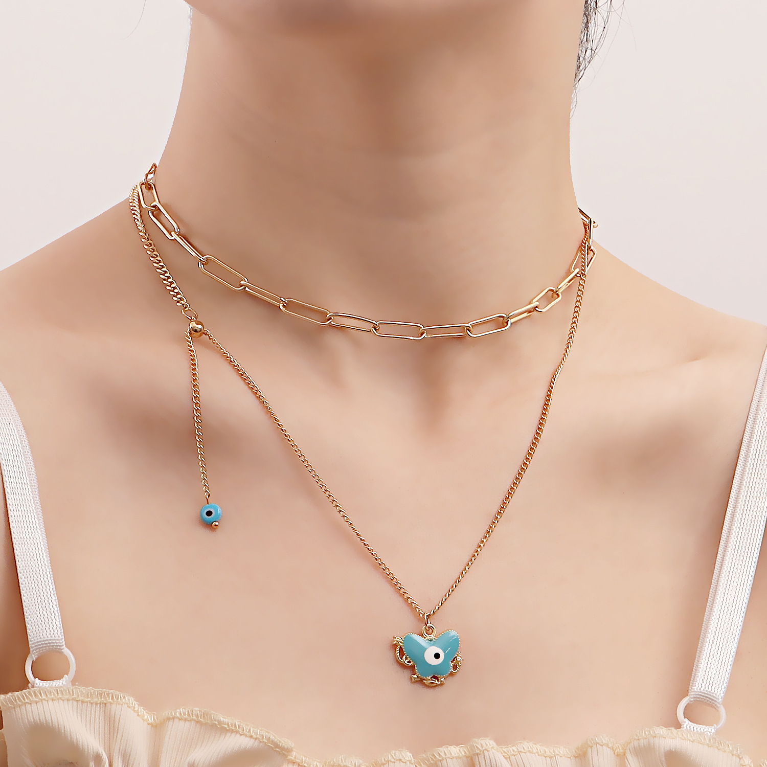 European and American Cross-border Jewelry Creative Eyes Niche Chain Design Sense Metal Necklace All-match Butterfly Pendant Necklace