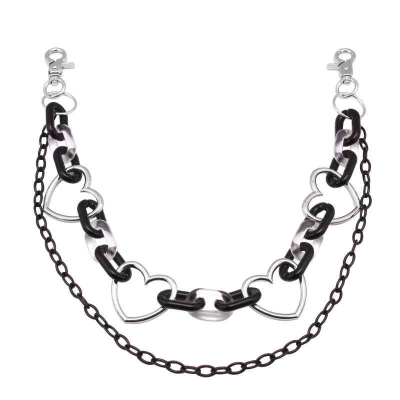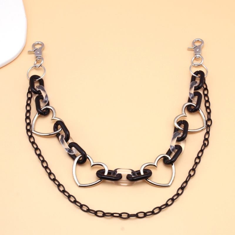 | nameOriginal | European and American Cross-border Jewelry Double-layer Hollow Heart Waist Chain Hanging Punk Hip-hop Exaggerated Black Acrylic Pants Chain |