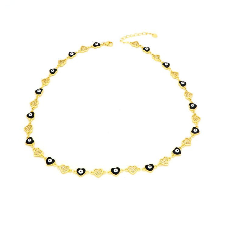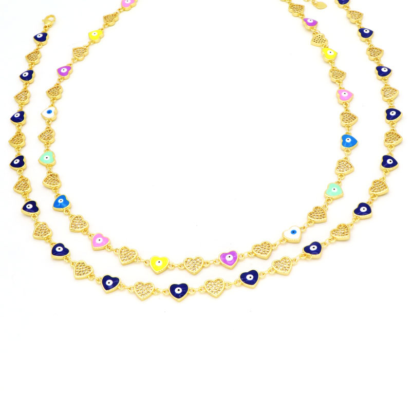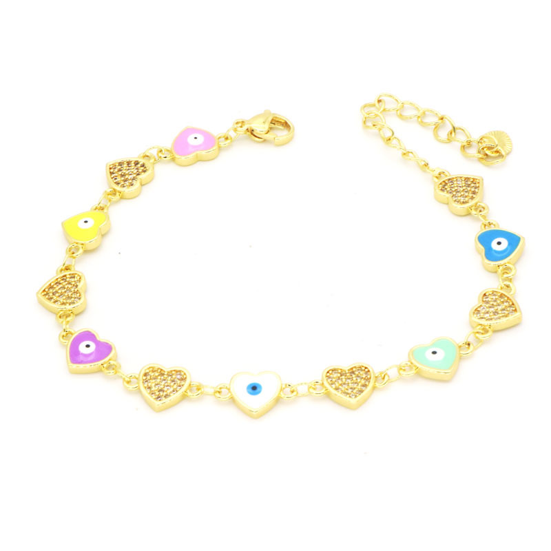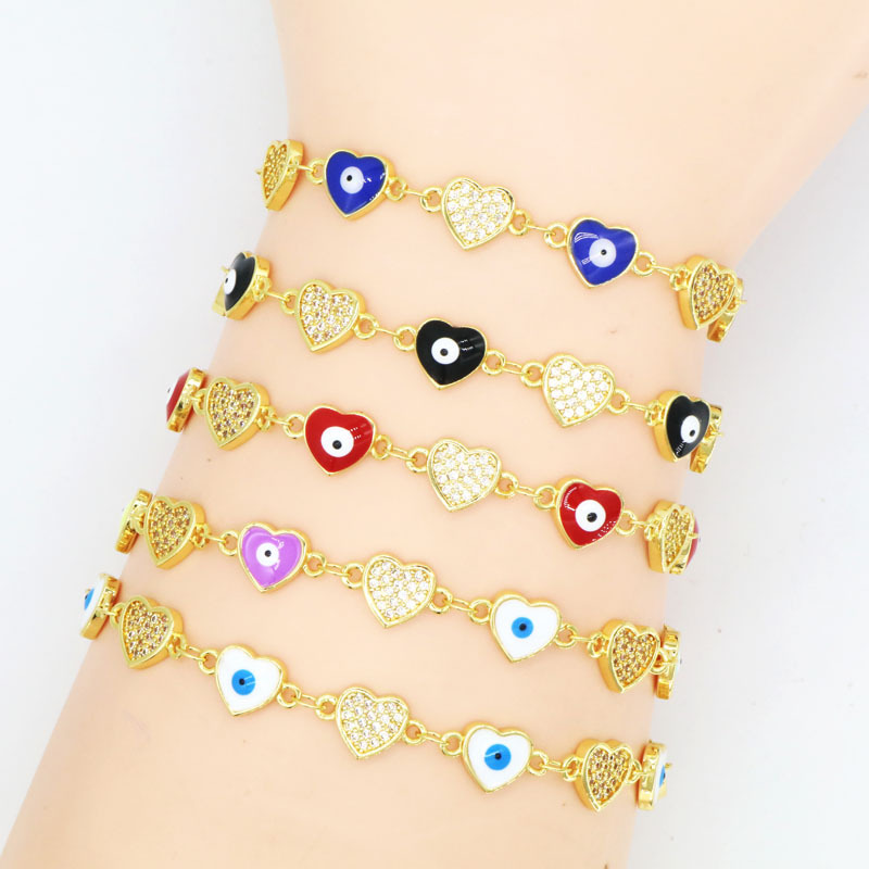| nameOriginal | European and American cross-border jewelry dripping oil Love Devil's Eye necklace simple peach heart zircon eye necklace bracelet suit |