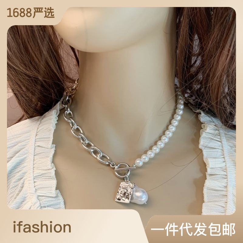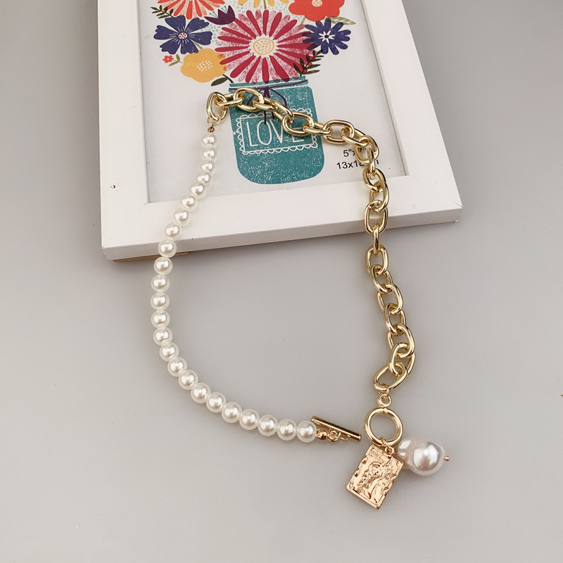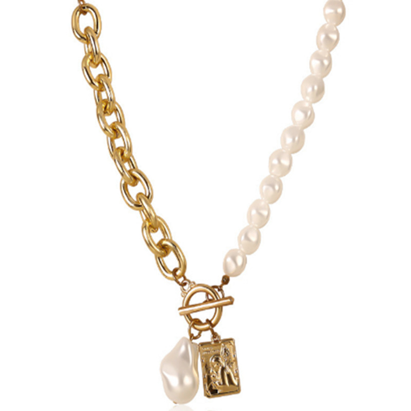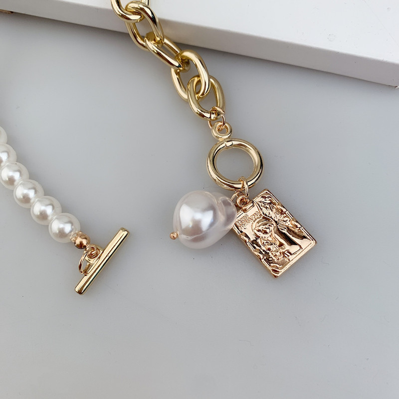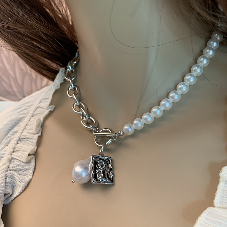 | nameOriginal | European and American cross-border jewelry elegant shaped pearl necklace women's retro natural alloy portrait square necklace |