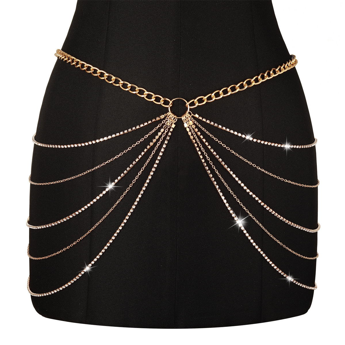 | nameOriginal | European and American cross-border jewelry fashion all-match personalized geometric waist chain Women's metal rhinestone chain multi-layer tassel body chain |