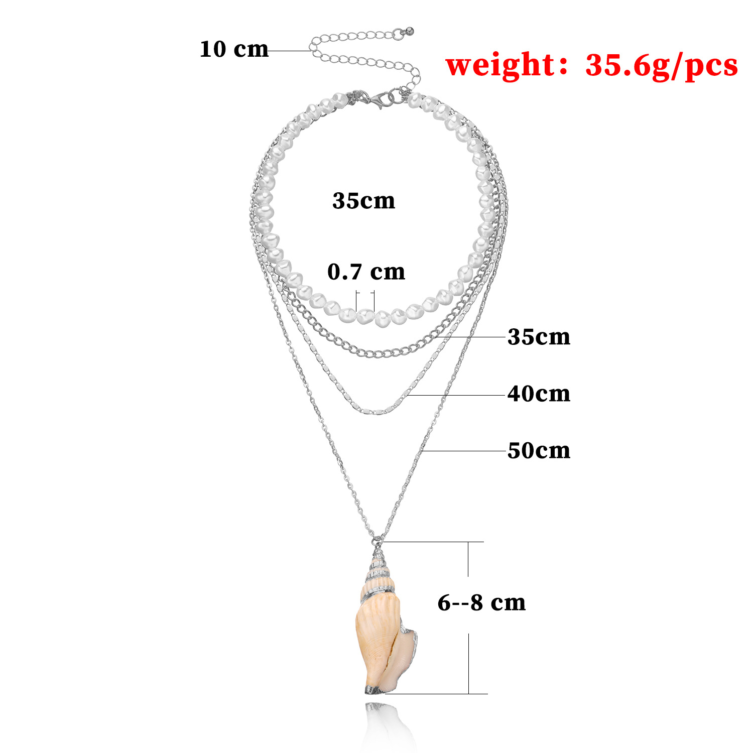 European and American Cross-border Jewelry Fashion Conch Pendant Necklace Women’s Retro Exaggerated Pearl Multi-layer Chain Necklace