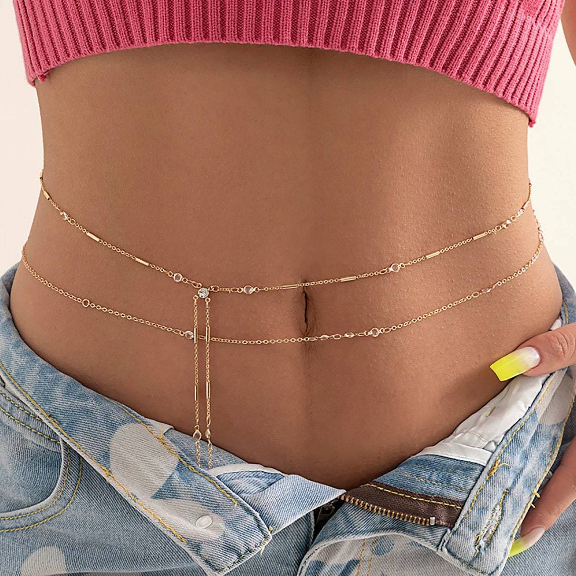 | nameOriginal | European and American Cross-border Jewelry Fashion Elegant Double-layer Tassel Body Chain Women's All-match Imitation Crystal Metal Zircon Waist Chain |