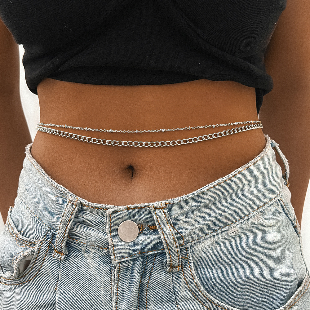 European and American Cross-border Jewelry Fashion Round Bead Chain Double-layer Women's Waist Chain Metal Chain Body Chain Belly Chain Waist Decoration