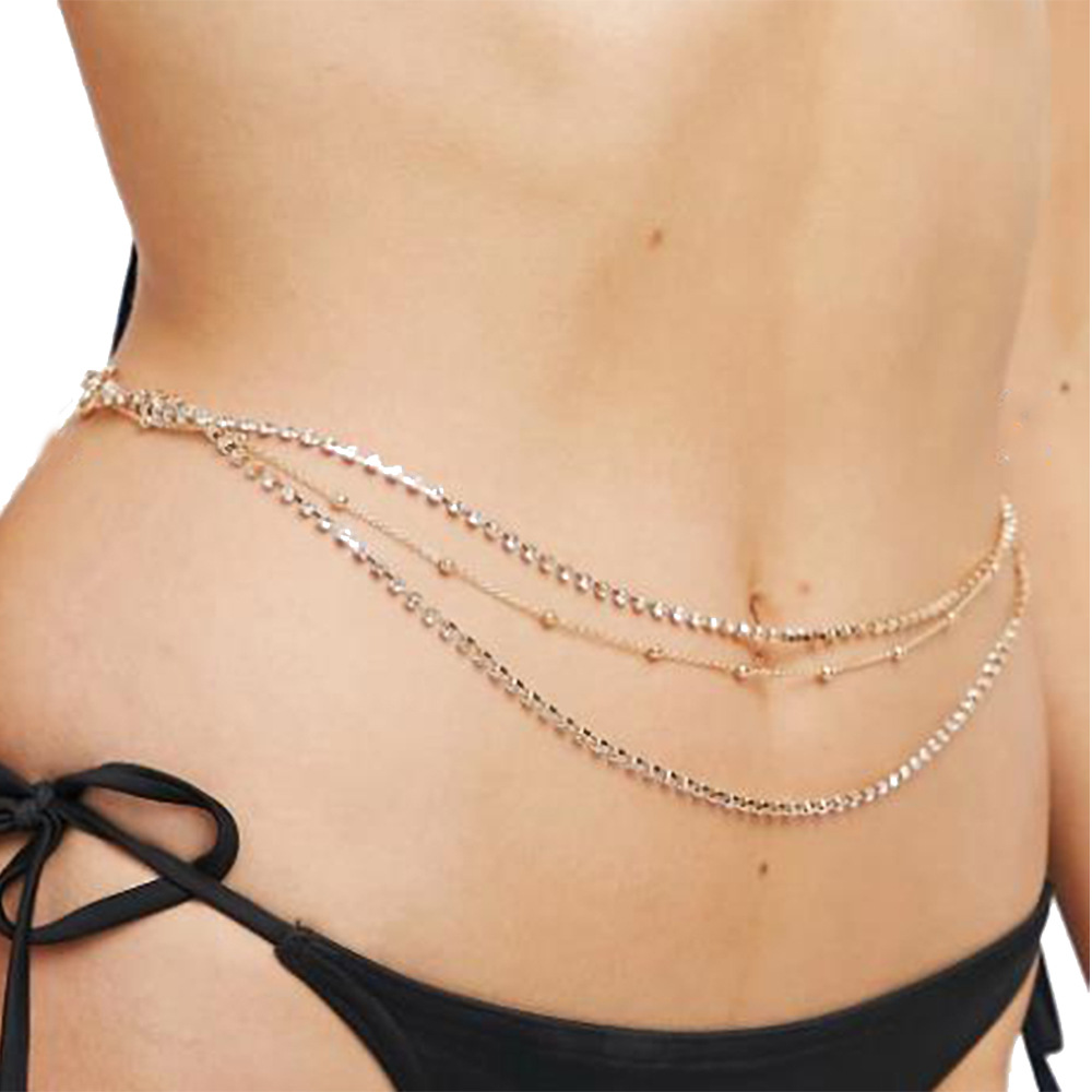 | nameOriginal | European and American cross-border jewelry fashion sexy simple stainless steel crystal chain bead chain beach bikini waist chain |